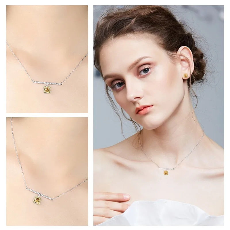 Fashion 925 Sterling Silver Necklace Natural Gemstones Citrine Inlaid Zircon Pendant Necklace for Women Fine Jewelry Gift