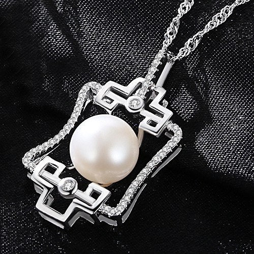 Fashion 925 Sterling Silver Necklace Natural Unique 10-15mm Pearl Pendant Necklace for Women Fine Jewelry Gift