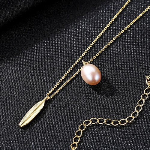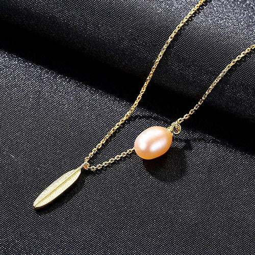 Genuine Fashion 925 Sterling Silver Necklace Natural Pearl Leaves Pendant Necklace for Women Fine Jewelry Gift