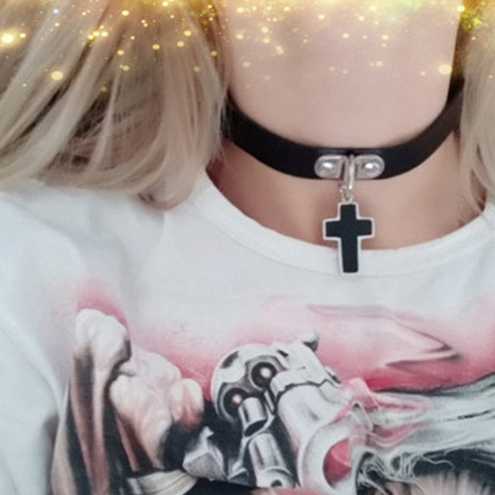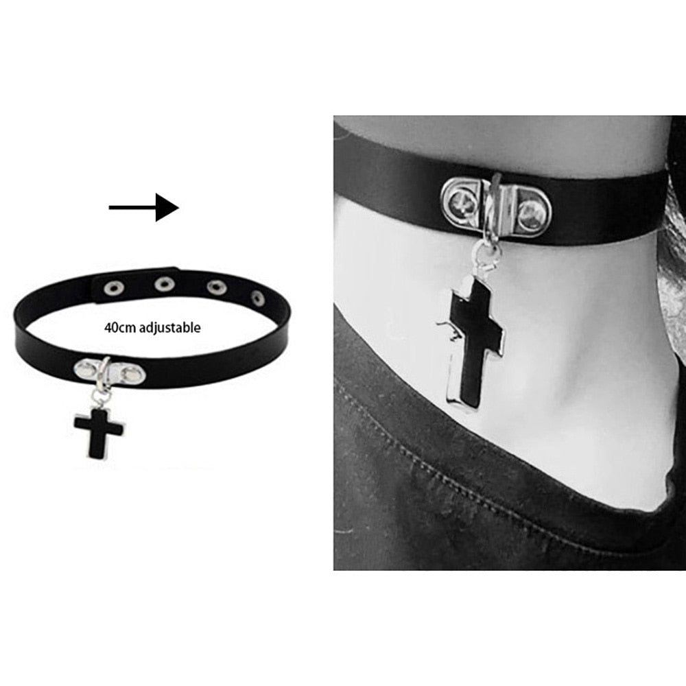 Leather Cross Choker Necklace Chunky Necklace Rock Sexy Cool Punk Goth Gothic Collar Steampunk Necklace Chokers for Women Men
