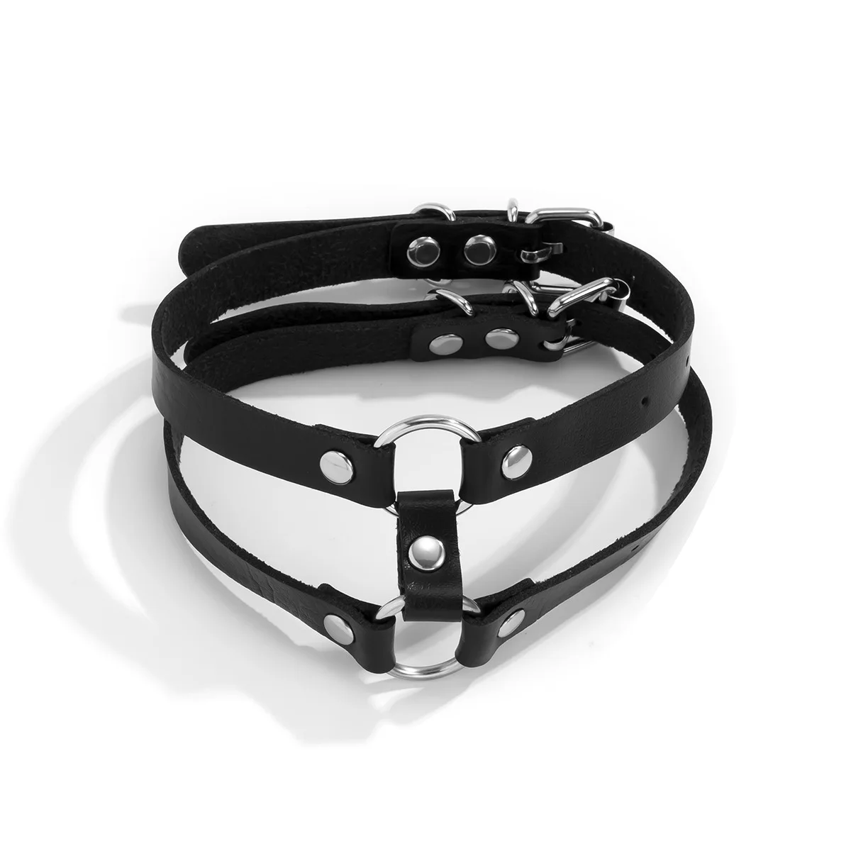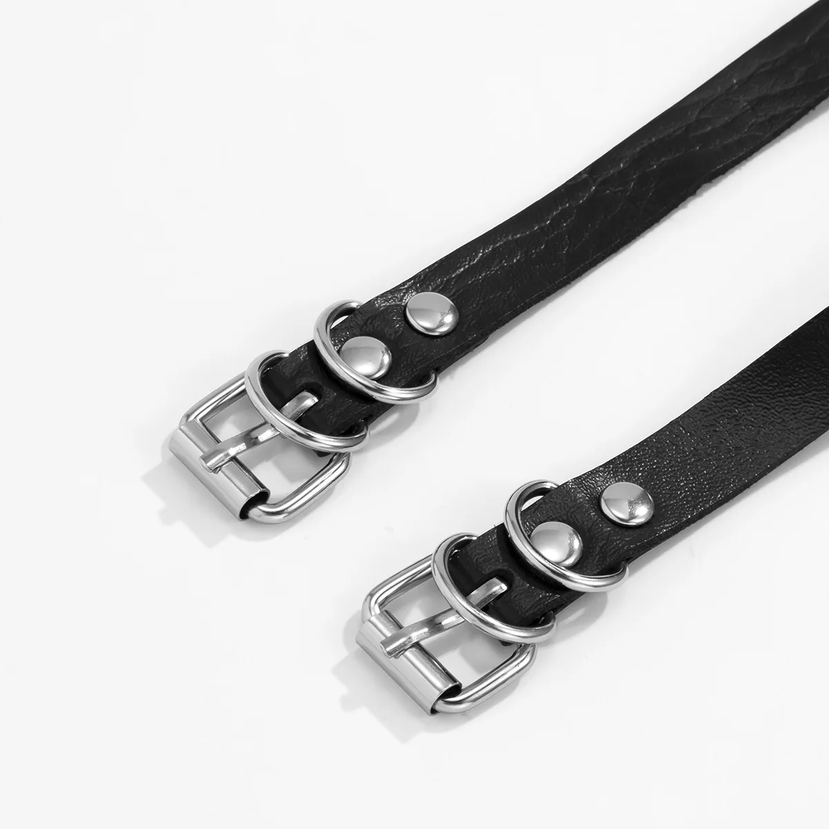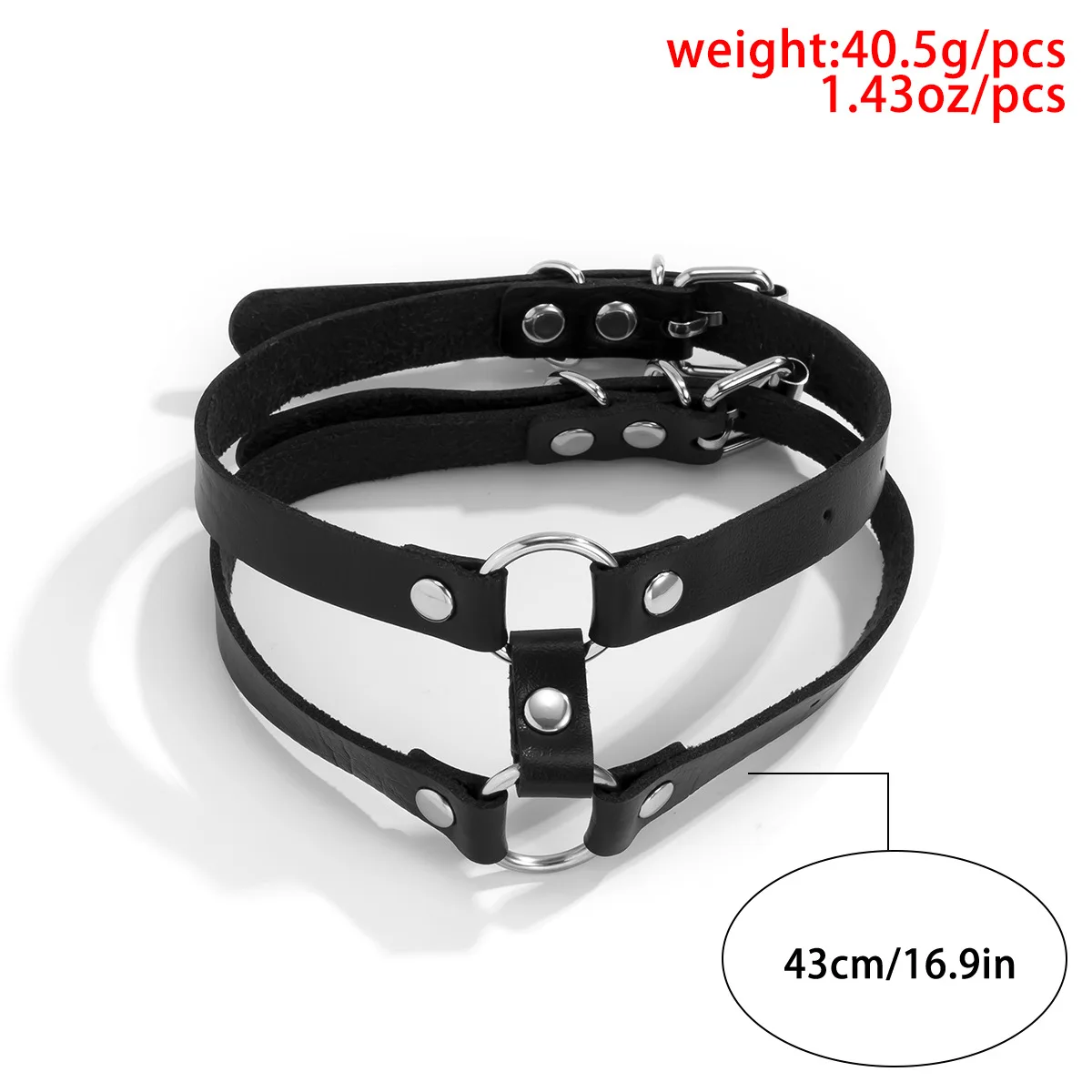 Leather Double Stitching Neckband Necklace Geometric Dark Wind Necklace Punk Girl Cold And Sexy Pu Metal Necklace