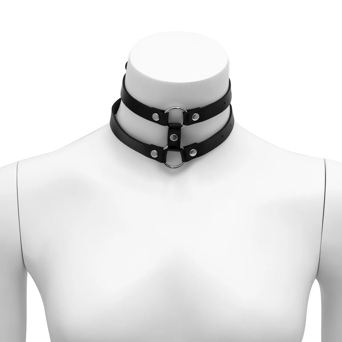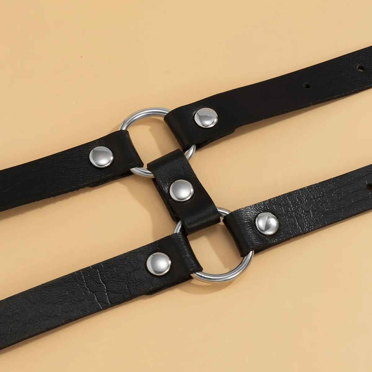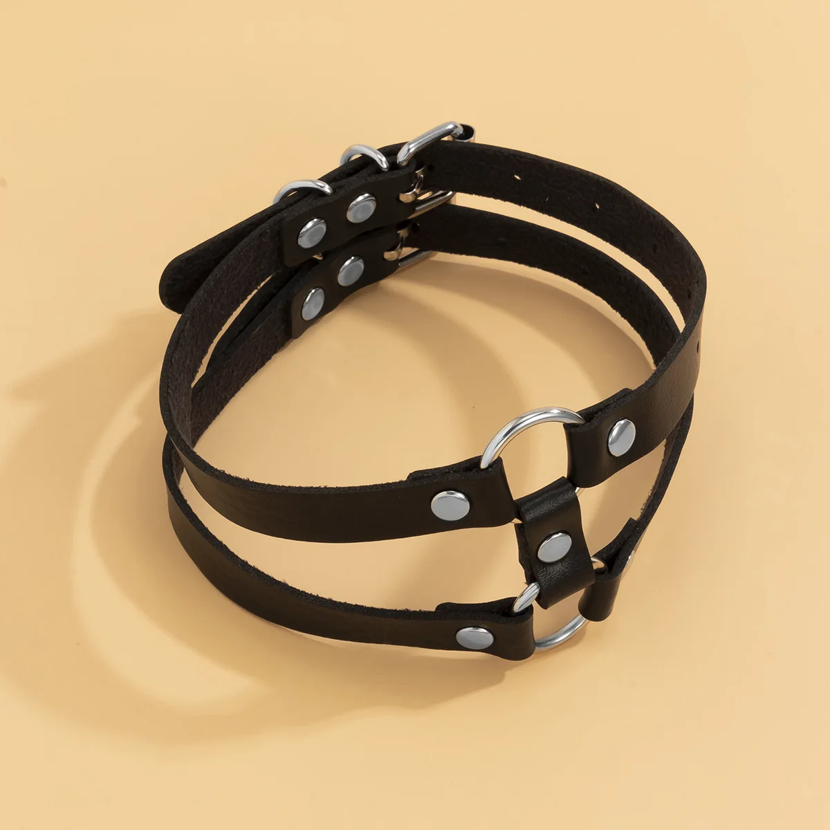 Leather Double Stitching Neckband Necklace Geometric Dark Wind Necklace Punk Girl Cold And Sexy Pu Metal Necklace