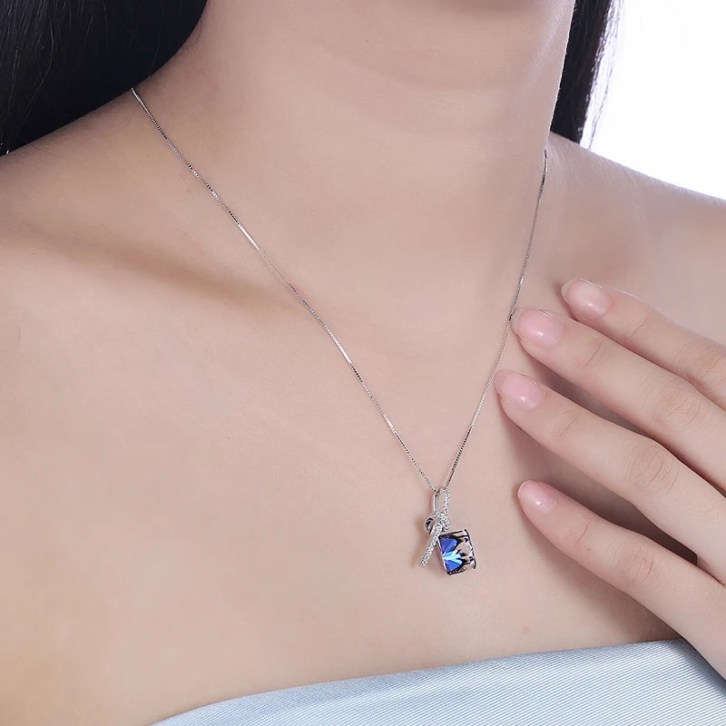 New Design Square Bead Crystal From SWAROVSKI Pendants Necklaces Chic S925 Silver Chain Necklace For Women Fine Jewelry
