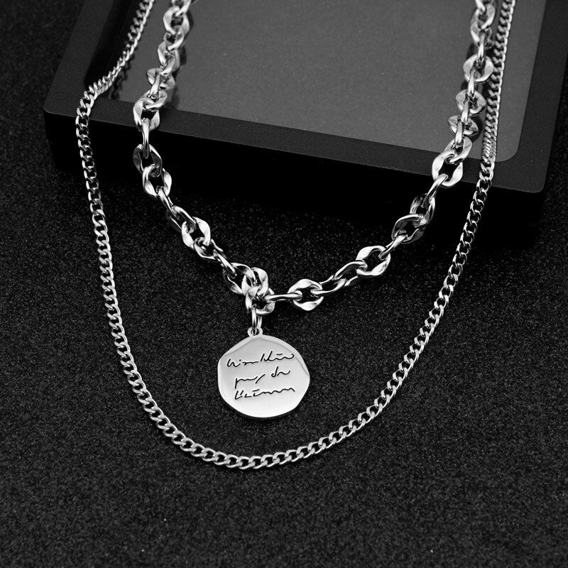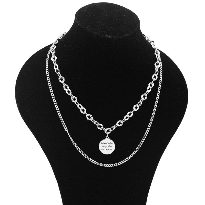 Letter Disc Double Layered Clavicle Chain Men And Women Necklace Pendant Necklace Layered Necklace Jewelry Necklace
