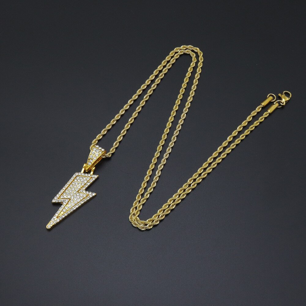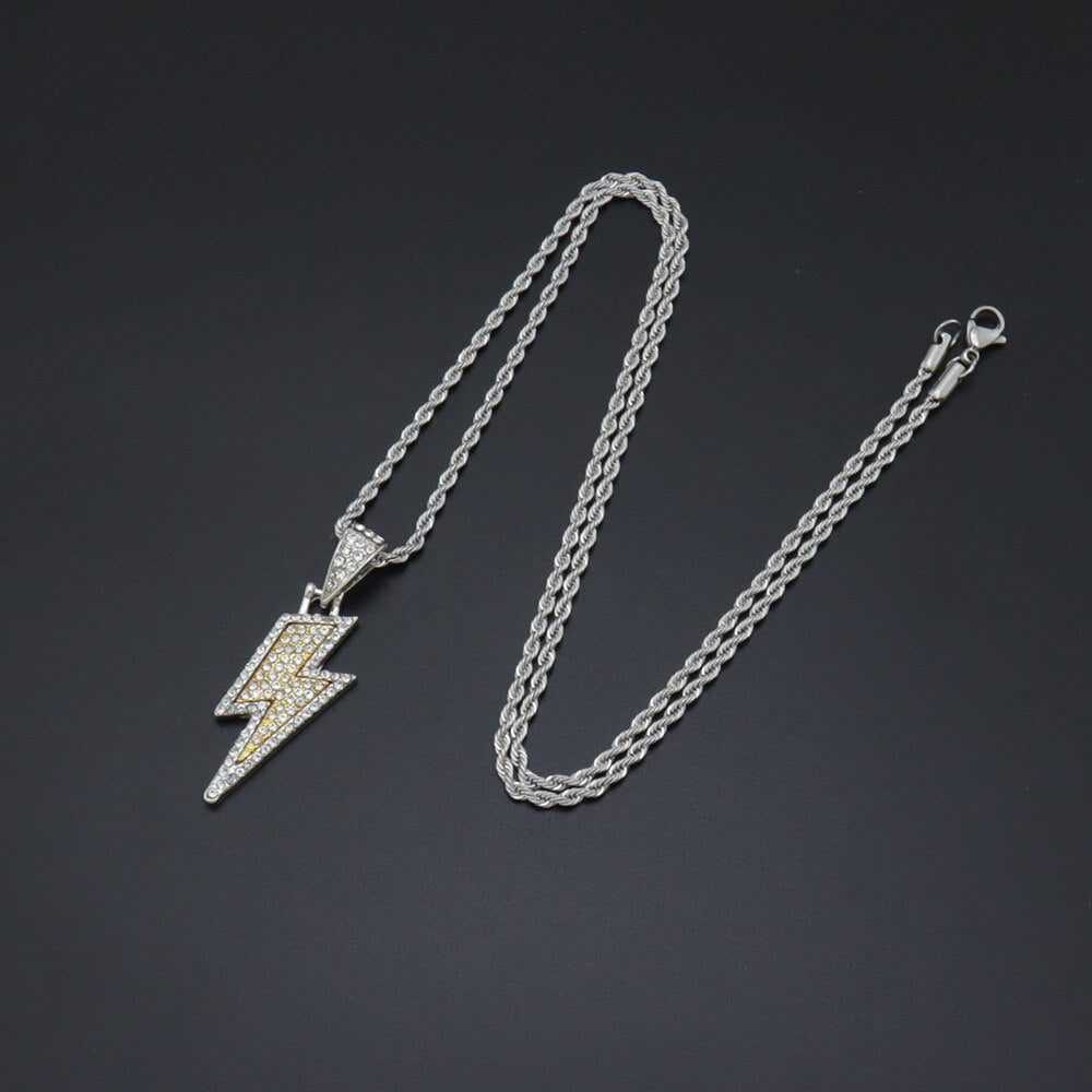 Lightning Pendant Necklace Hip Hop Neck Chain for Men Women Gold Silver Paired Pendants Friendship Couple Statement Necklace