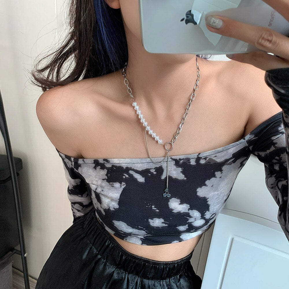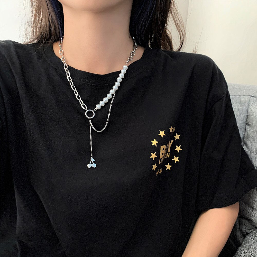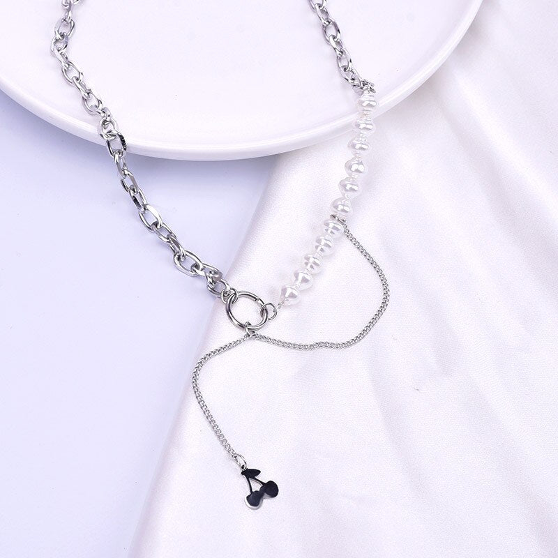 Little Cherry Sweater Windbreaker Titanium Steel Pearl Stainless Steel Jewelry Necklace Hip Hop Cuba Chain