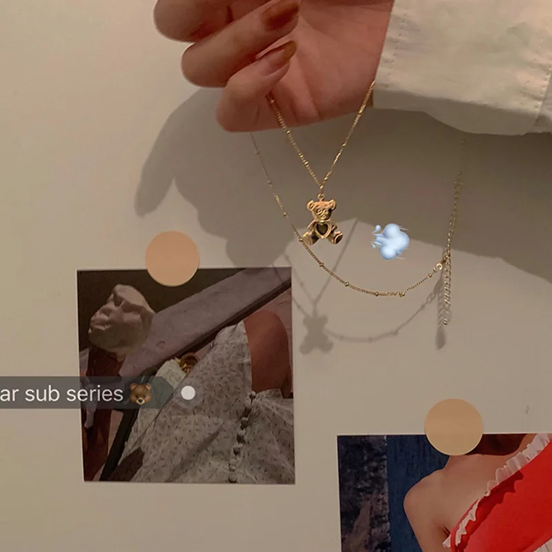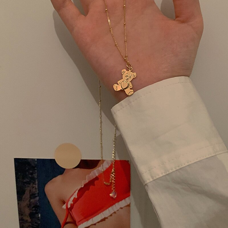 Liwore Cute Bear Pendant Necklace For Women Sweet Golden Chain Necklace Simple Ladies Necklace Necklace Jewelry