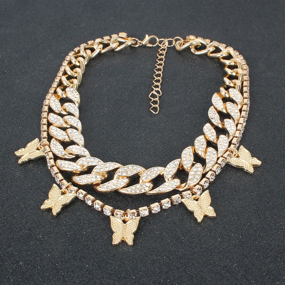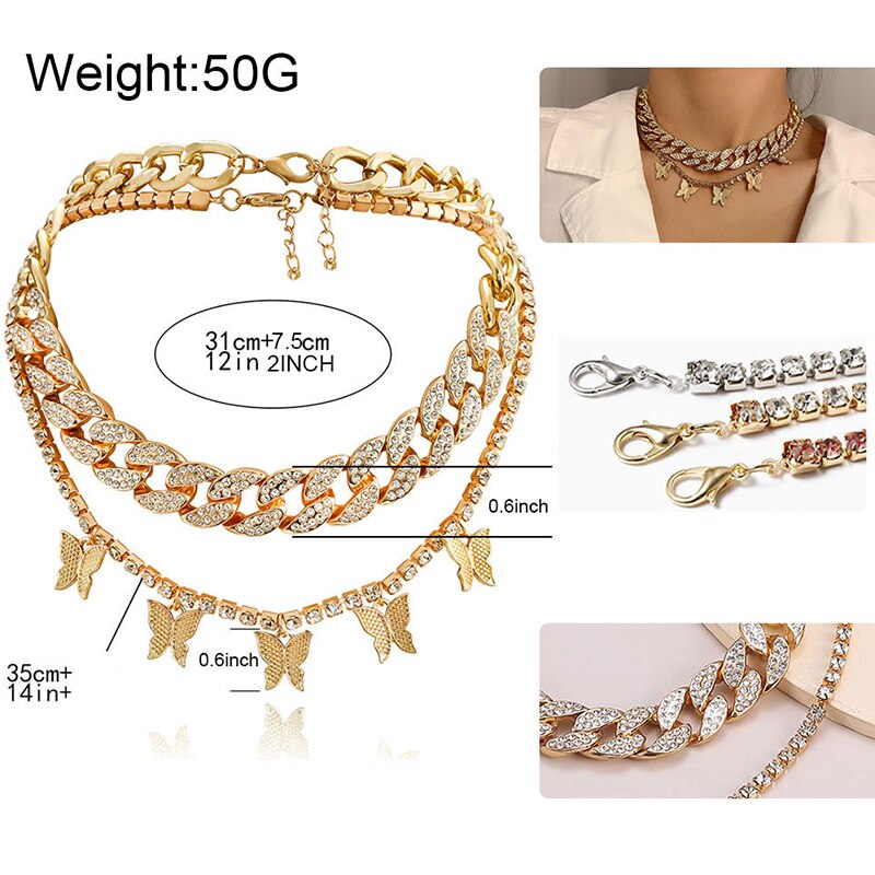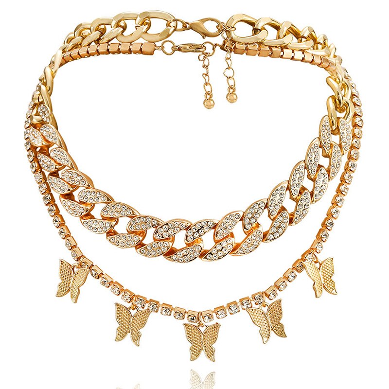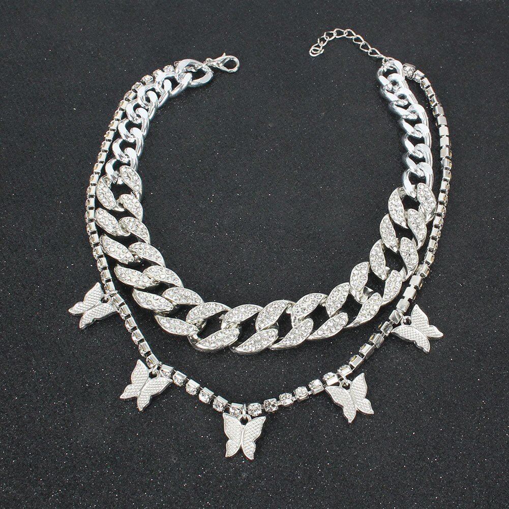 Lock Pendant Butterfly Necklace For Women Layered Chain Neck Punk Choker Padlock Goth Necklaces Jewelry Grunge Accessories