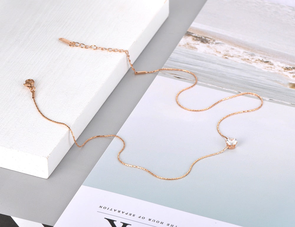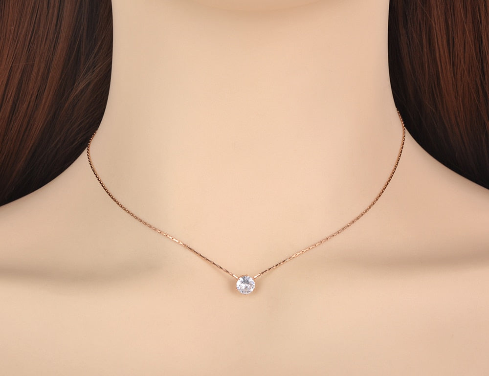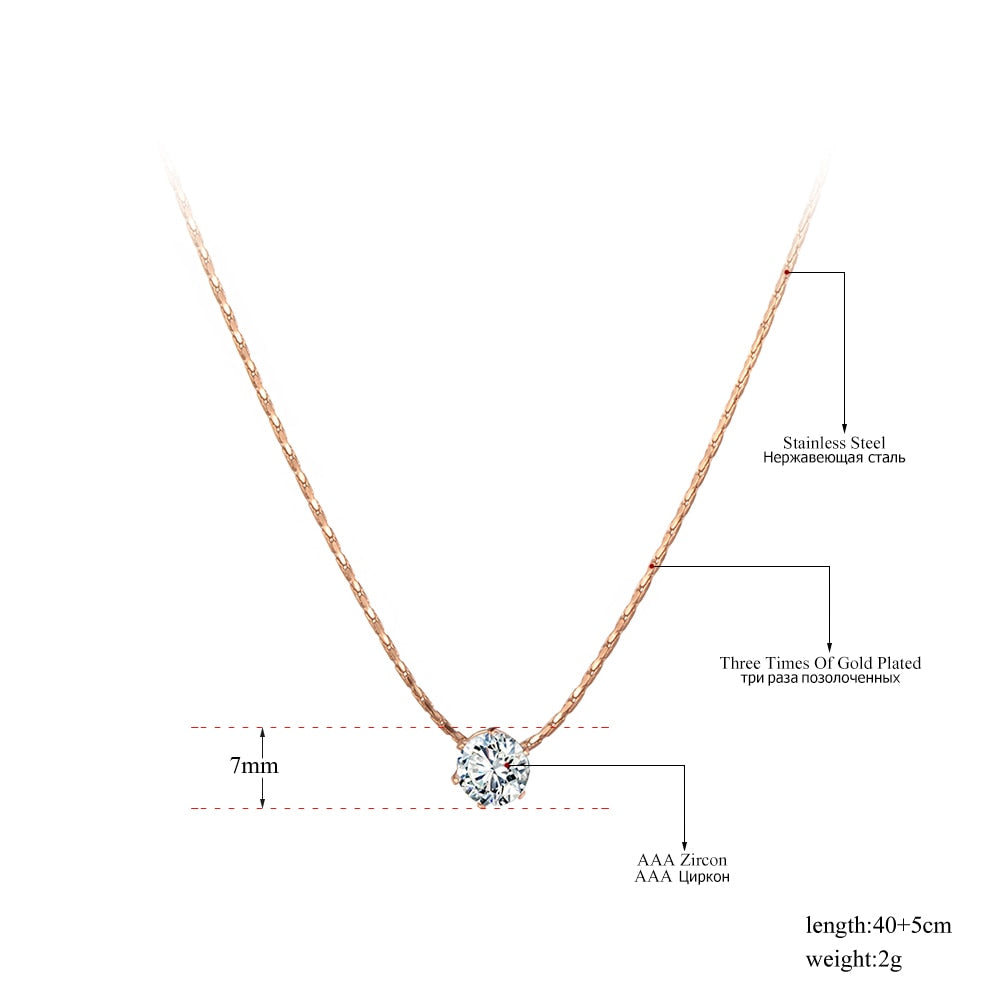 Lokaer Simple Design Rose Gold CZ Crystal Charm Pendant Necklaces For Women Girls Trendy Titanium Steel Office Necklace N20213