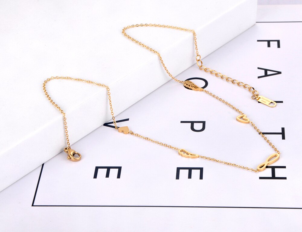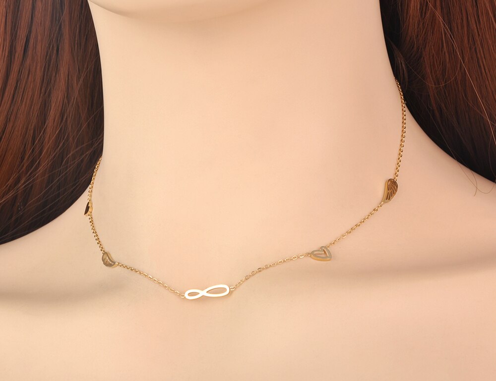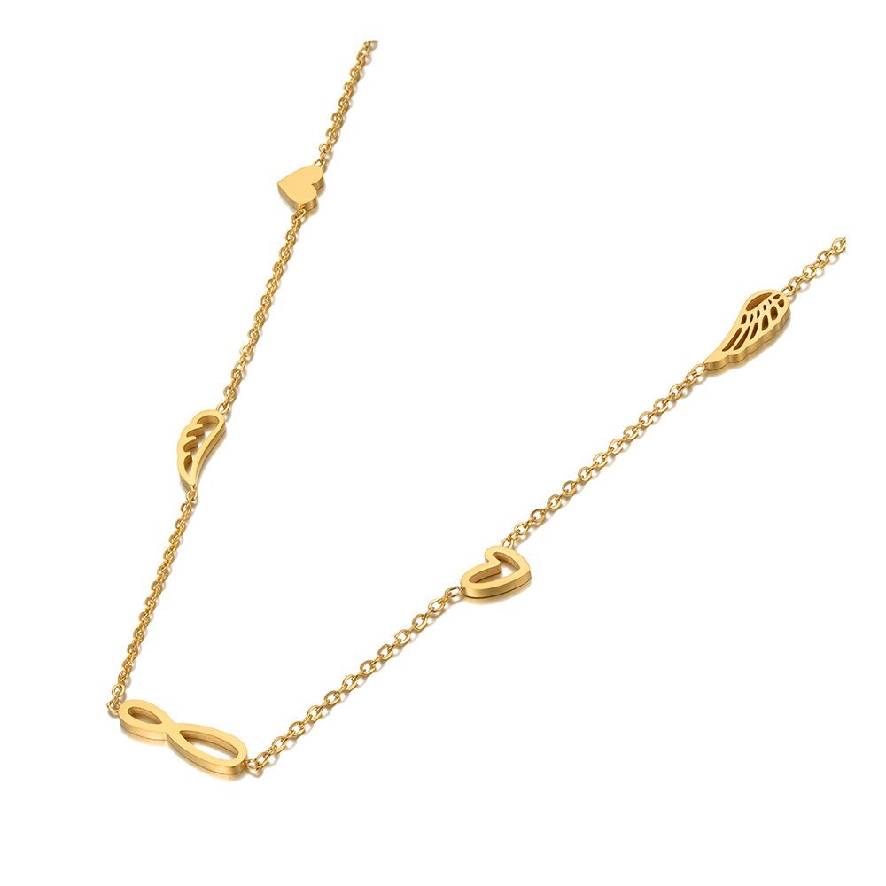Lokaer Titanium Stainless Steel Forever & Heart & Wings Charm Pendant Necklace Jewelry Bohemia Necklace For Women N21134