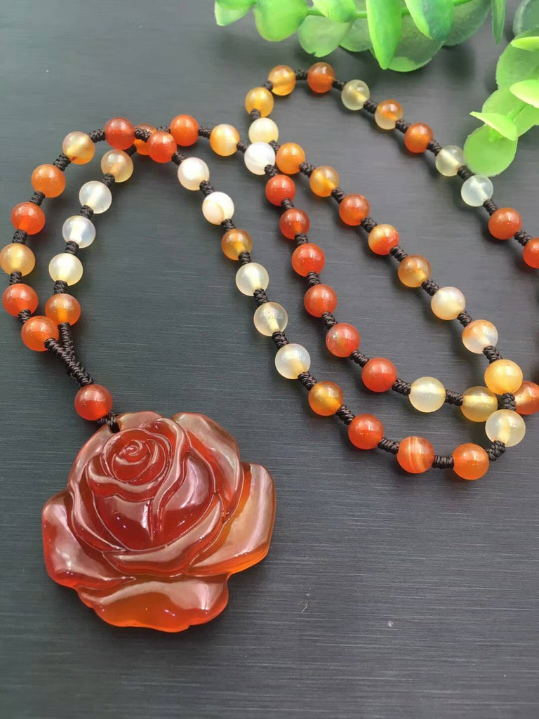 Long Beads Winter Sweater Chain Flower Natural Jade Gmestone Pendant Necklace Women Mens Lucky Jewelry Gift Wholesale