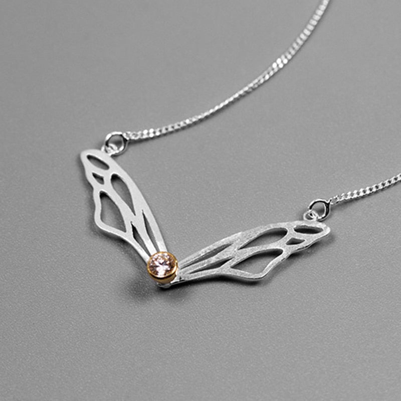 Real 925 Sterling Silver Handmade Designer Original Fine Jewelry Hollow Butterfly Wings Pendant Necklace for Women