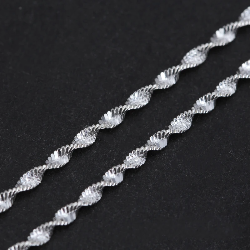 Real 925 Sterling Silver Handmade Fine Jewelry Top Quality Sparkle Twisted Necklace Chain for Women Collier Acessorios
