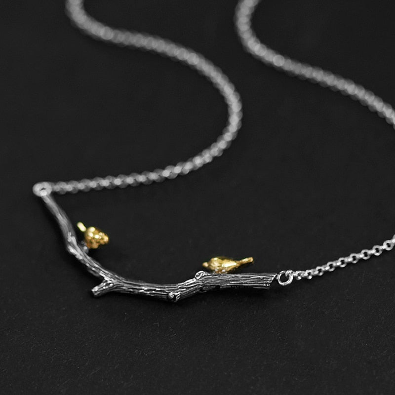 Real 925 Sterling Silver Natural Original Handmade Fine Jewelry Bird on Branch Necklace for Women Bijoux