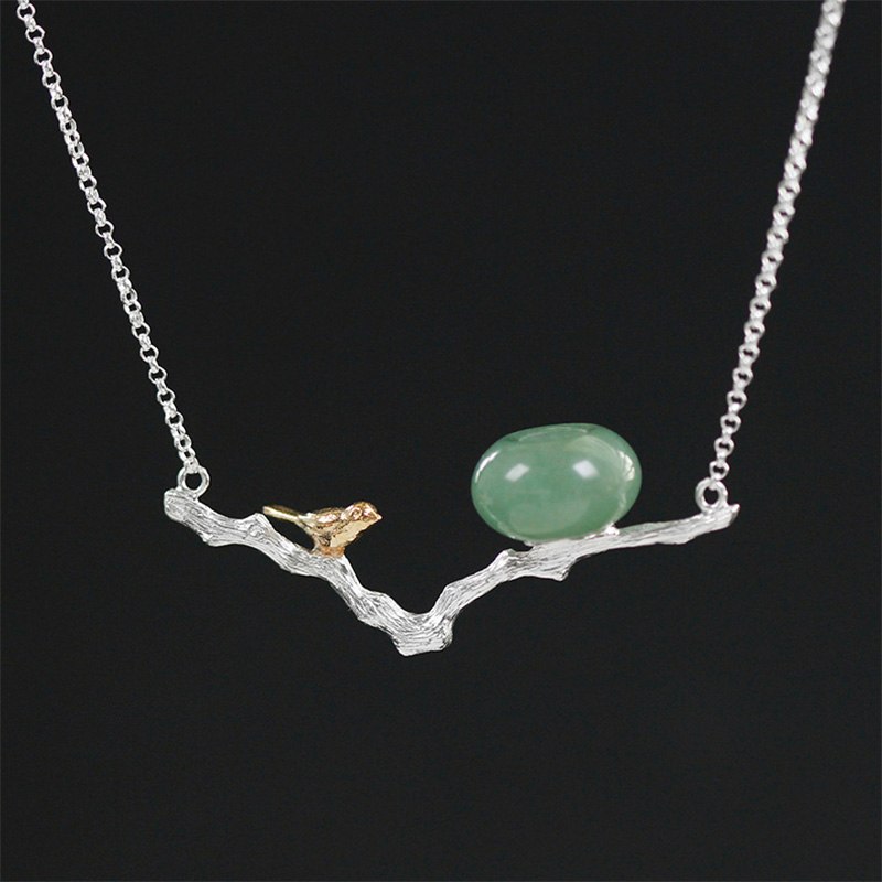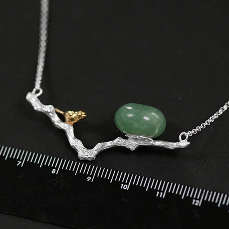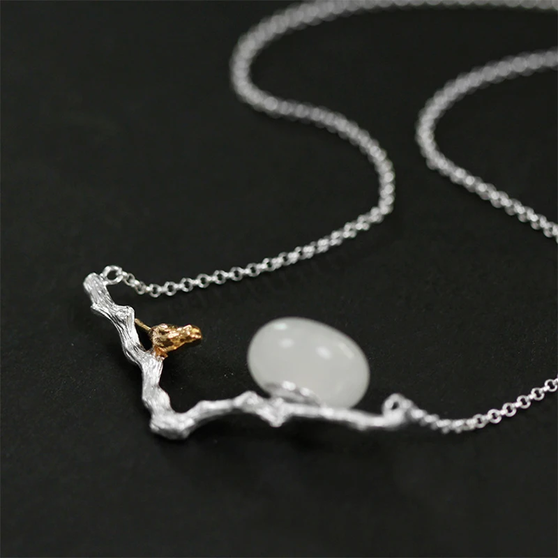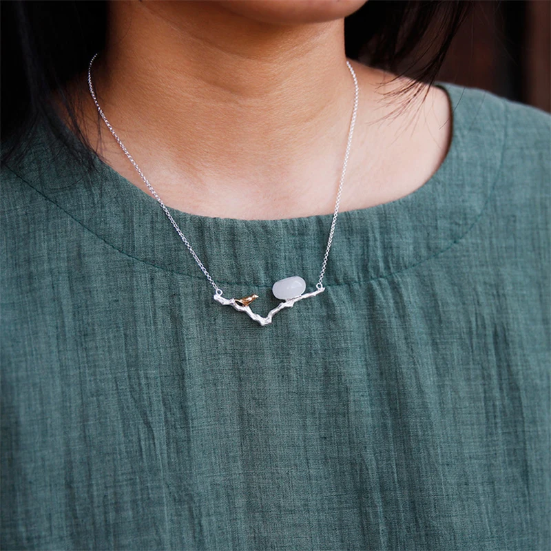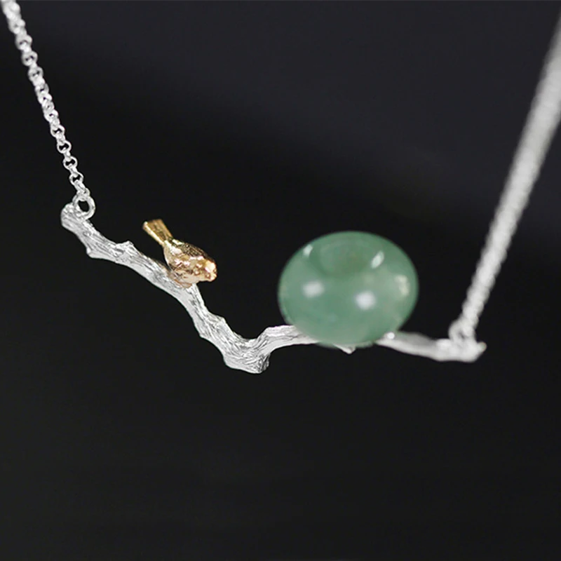Real 925 Sterling Silver Natural Stones Handmade Fine Jewelry Retr Bird Necklace with Pendant for Women Bijoux