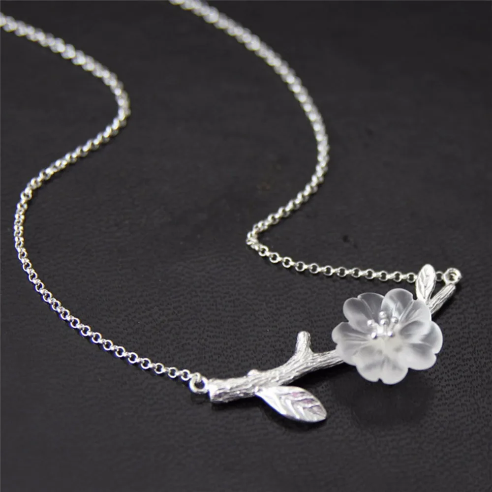 Real 925 Sterling Silver Necklaces Pendants Natural Crystal Flower Choker Necklace Crystal Statement Wedding Jewelry