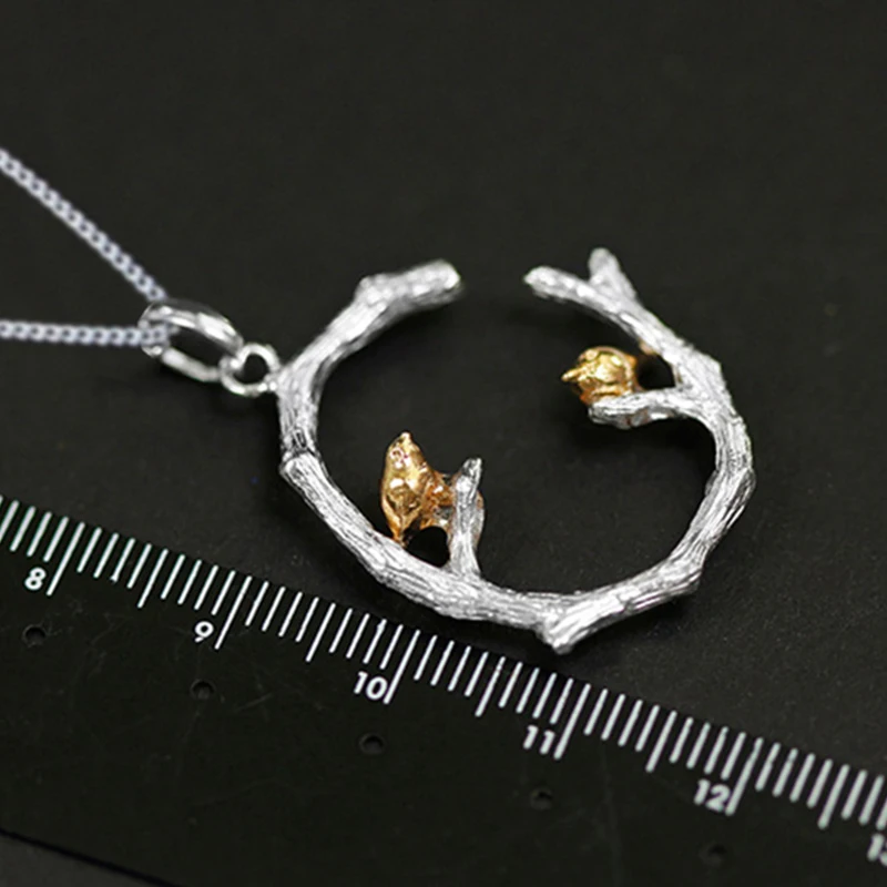 Real 925 Sterling Silver Original Handmade Fine Jewelry Bird on Branch Jewelry Set with open Ring Pendant Necklace