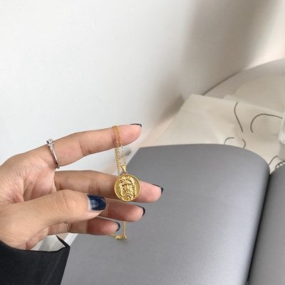 925 sterling silver Old man portrait coin pendant necklace round lucky guard figure necklace for women festival jewelry