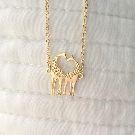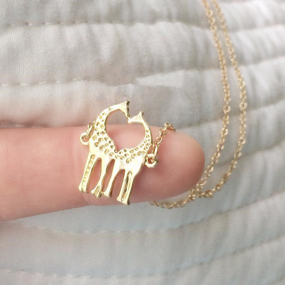 Love Heart Giraffe Necklace Simple Cute Twin Baby Deer Animal Elk Antler Glamour pendant Necklace for Lovers Love Jewelry