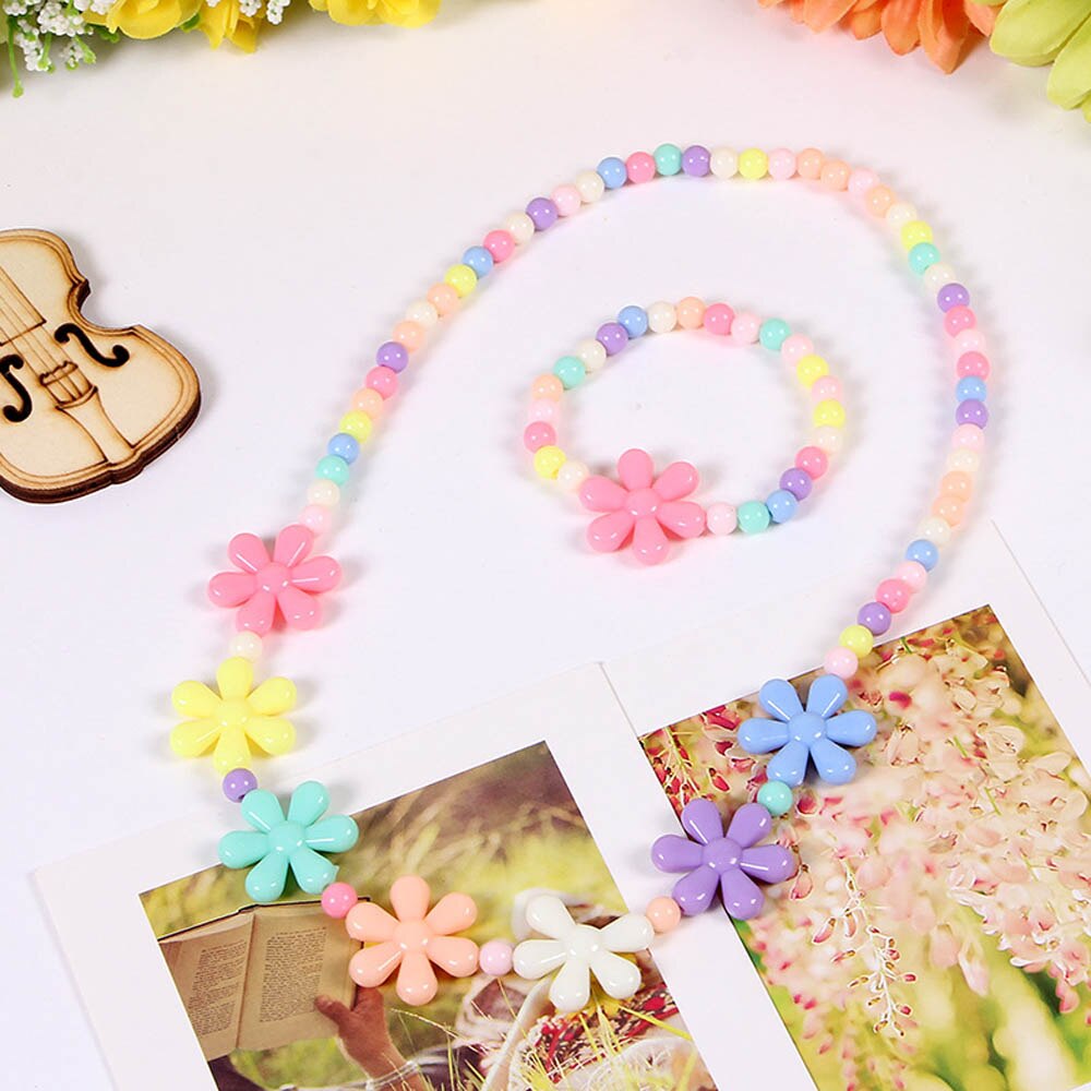 Lovely Girl Kids Sun Flower Necklace Bracelet Earclip Imitation Pearls Flower Children Sets Accessories