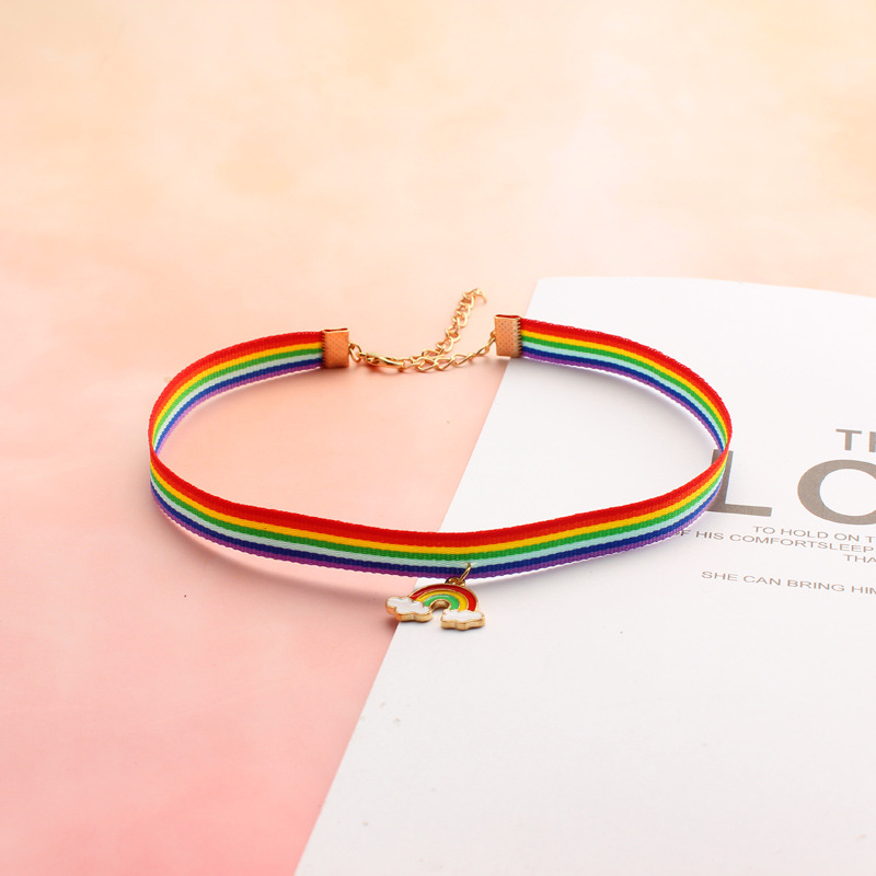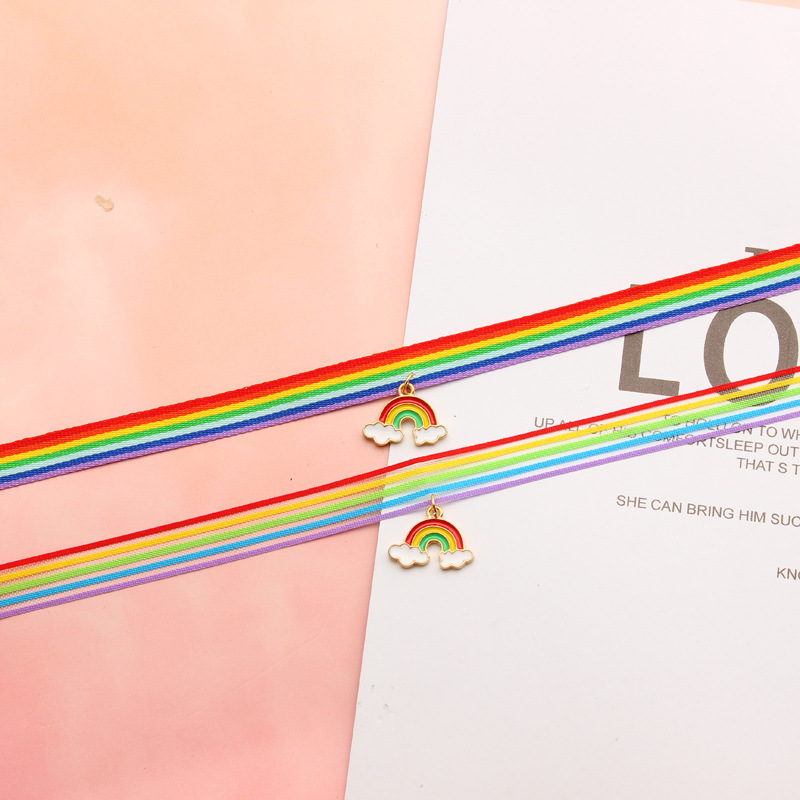 Lovely Rainbow Choker Necklace with Pendants Goth Summer Lace Necklace Vintage Women's Jewelry Girls Aesthetic Collier Femme