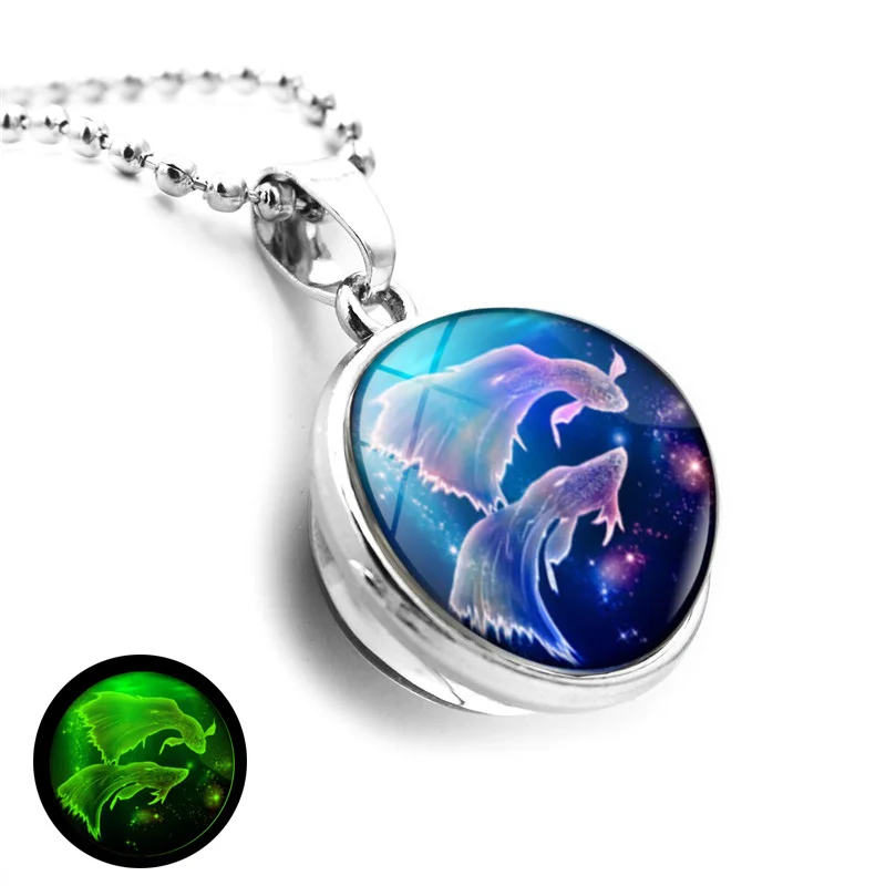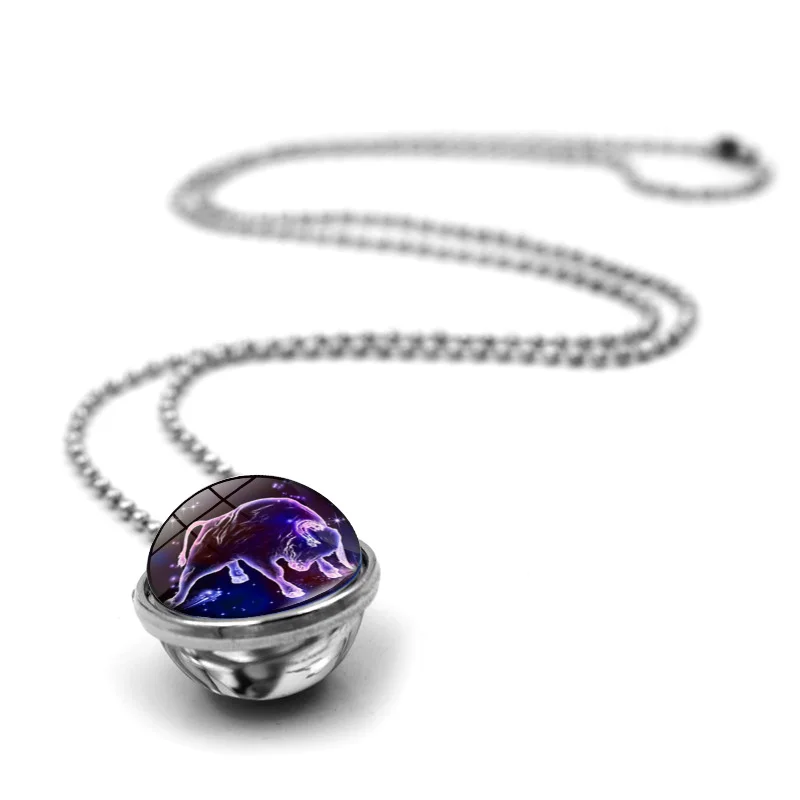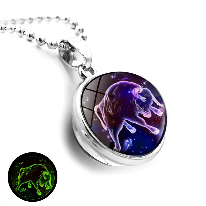 Luminous 12 Zodiac Signs Necklace Double Sided Glass Ball Pendant Gemini Virgo Cancer Aries Constellation Necklace Birthday Gift