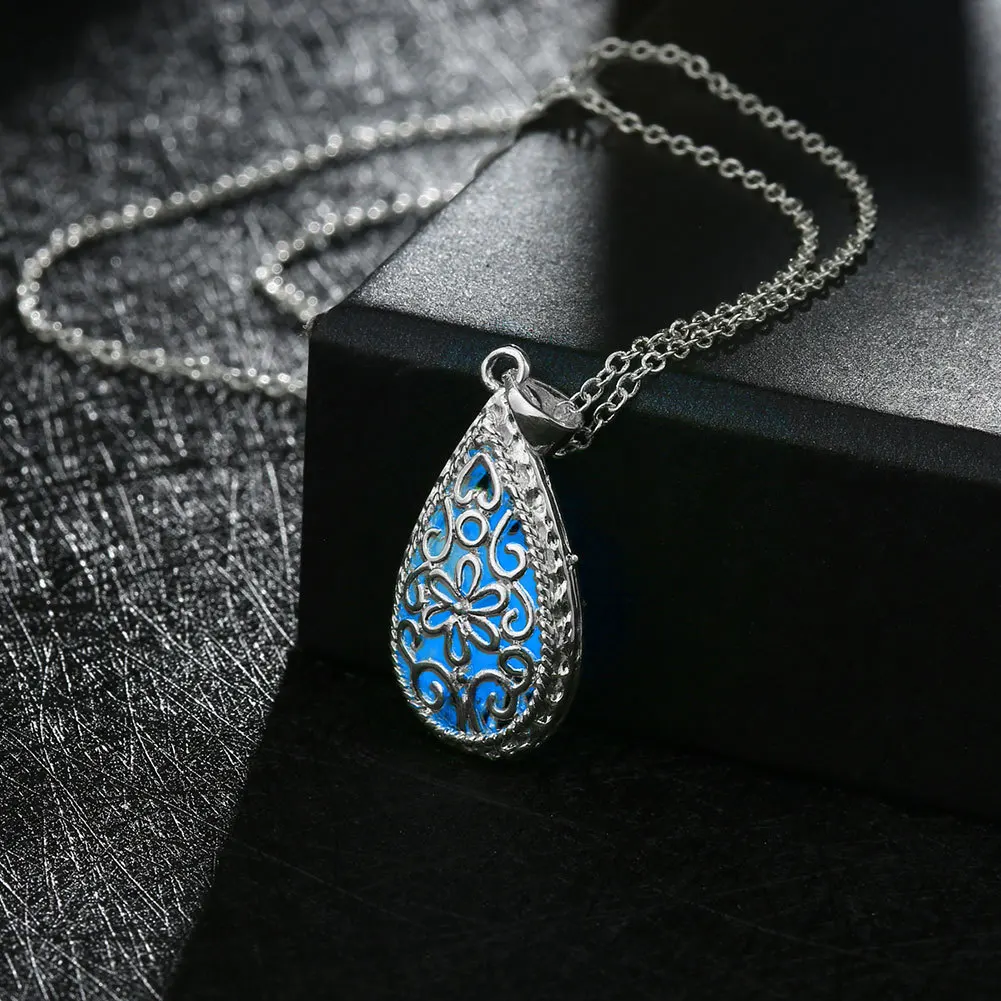 Luminous Glowing Stone Locket Necklace Jewelry Hollow Water Drop Necklace
