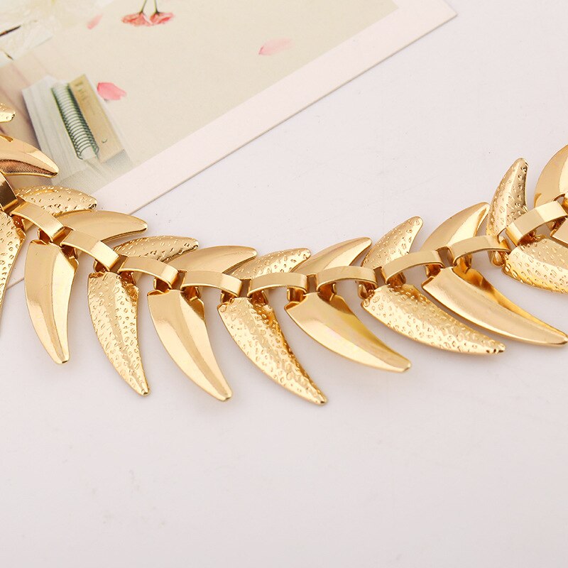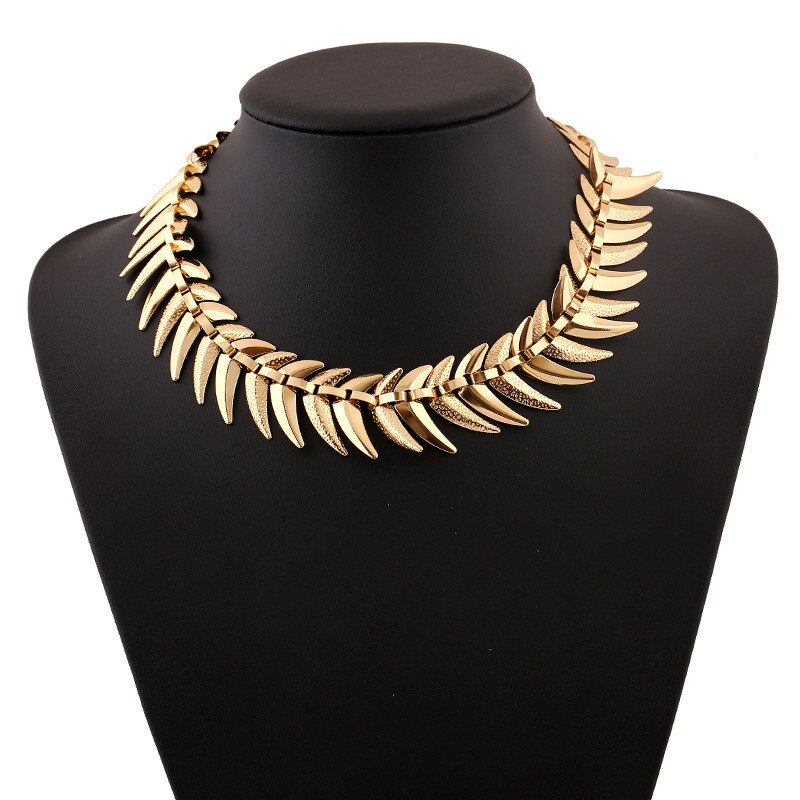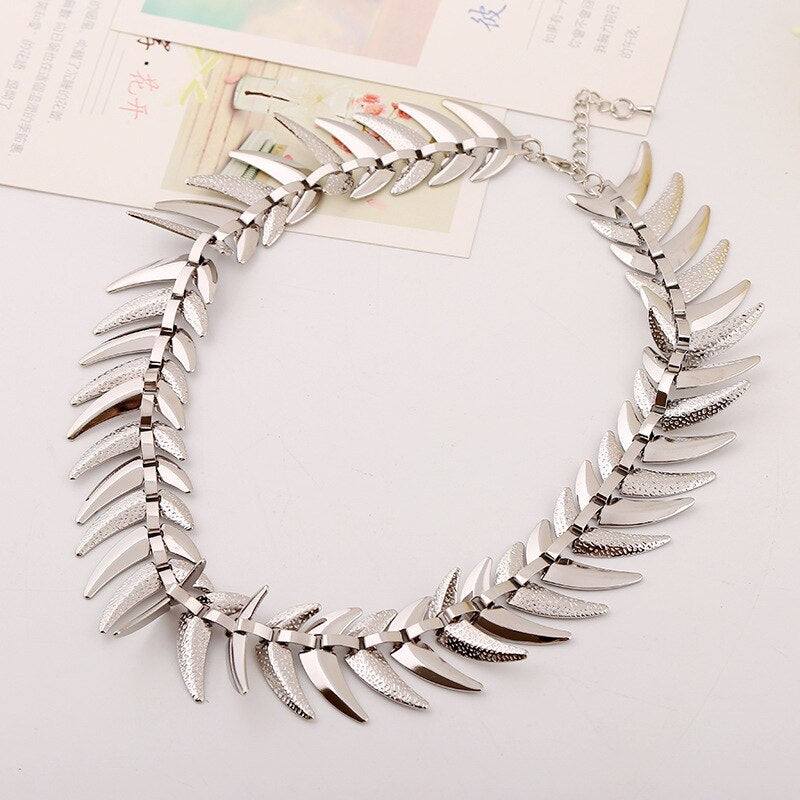 LZHLQ Fish Bone Choker Necklaces Geometric Splice Smooth Thick Metal Necklace Women Plated Alloy Punk Jewelry Statement