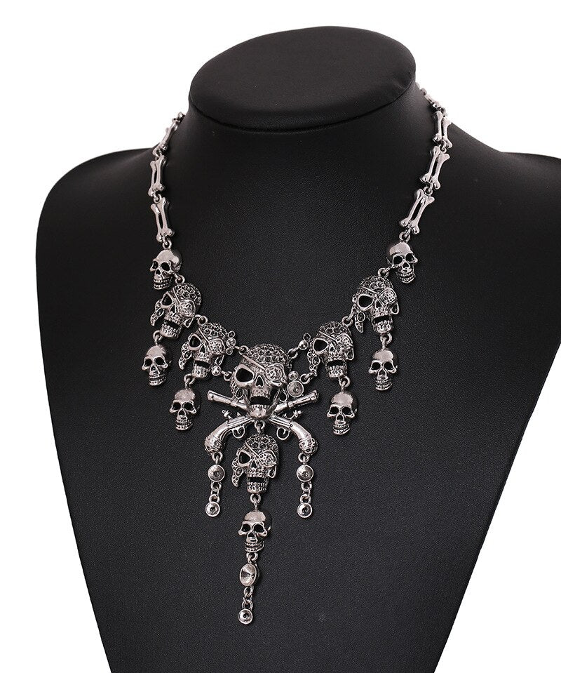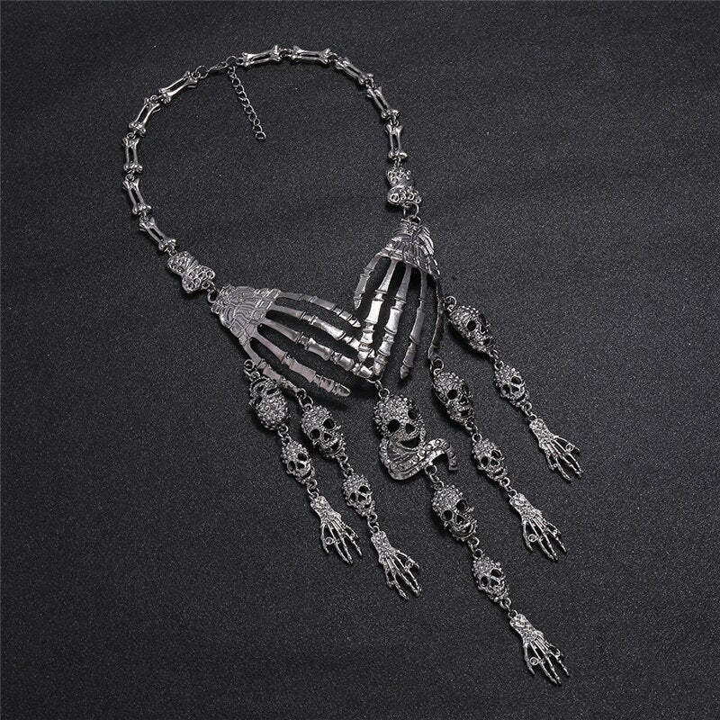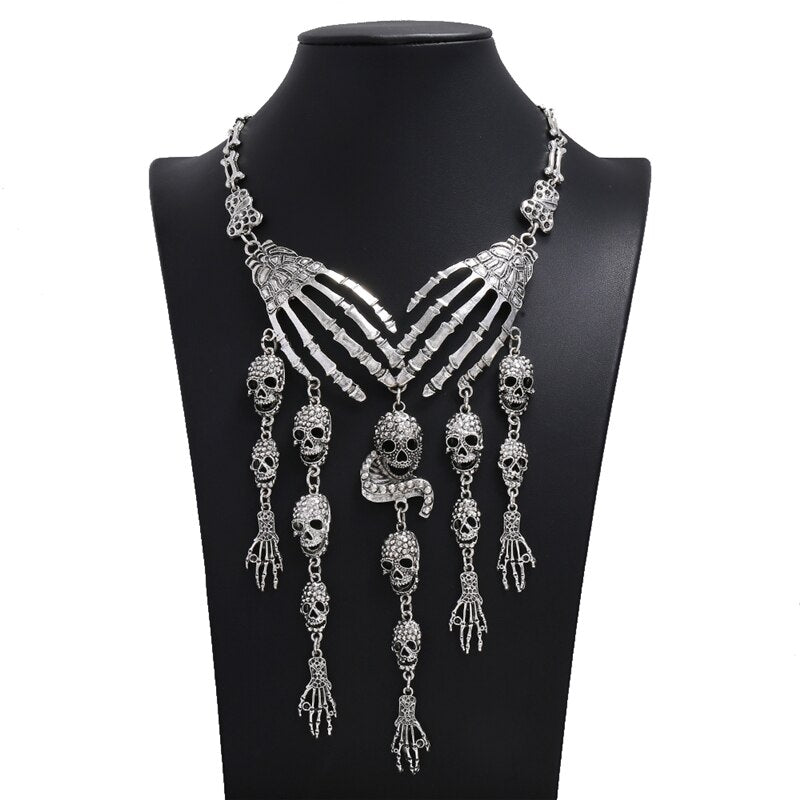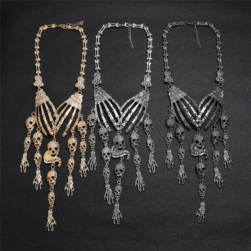 LZHLQ Necklace Skeleton Head Long Chain Female Accessories Collar Skull Necklace Punk Women Chunky Jewelry