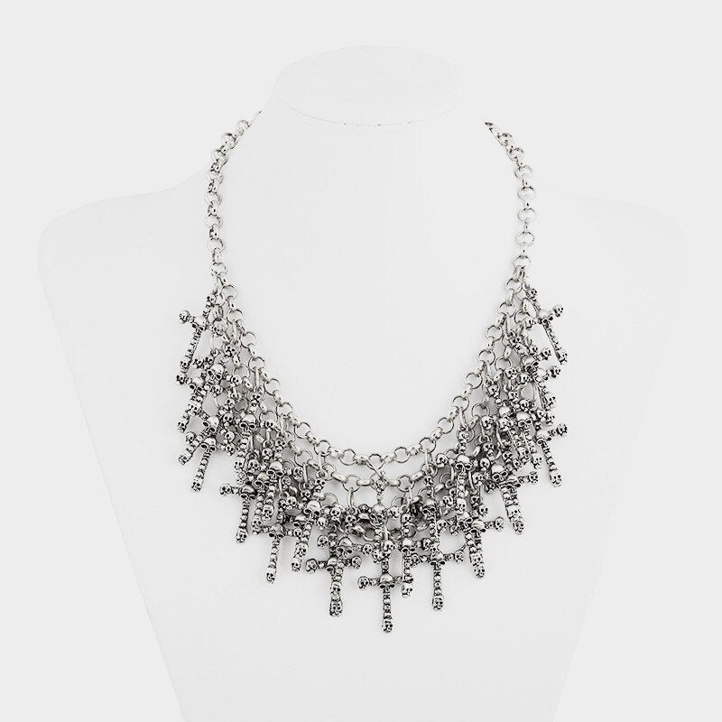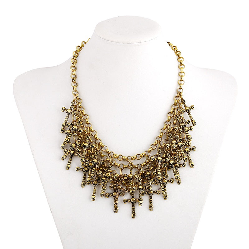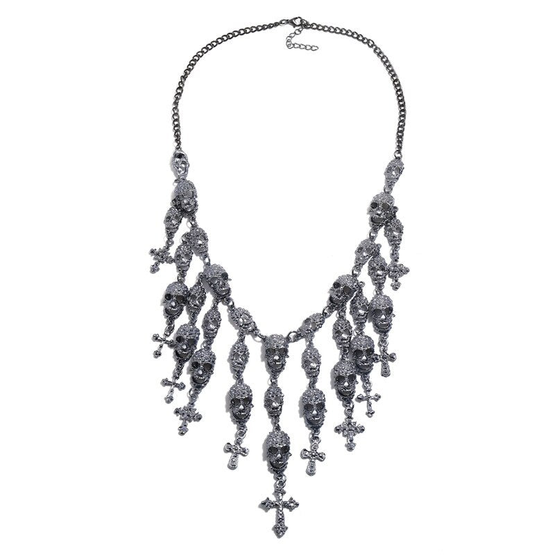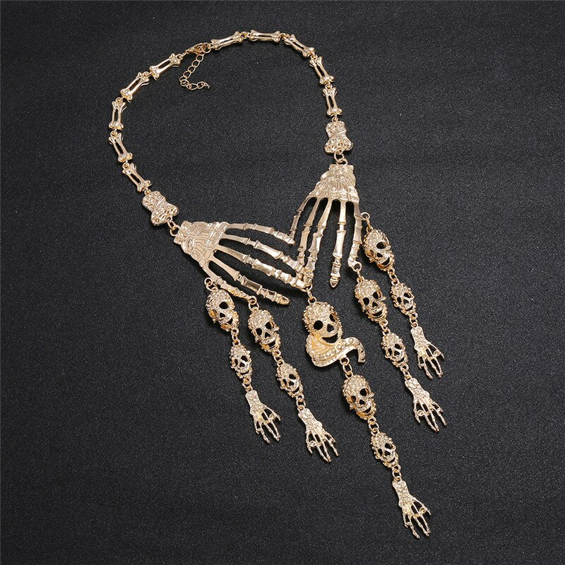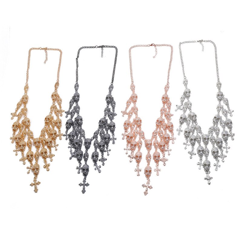 LZHLQ Necklace Skeleton Head Long Chain Female Accessories Collar Skull Necklace Punk Women Chunky Jewelry