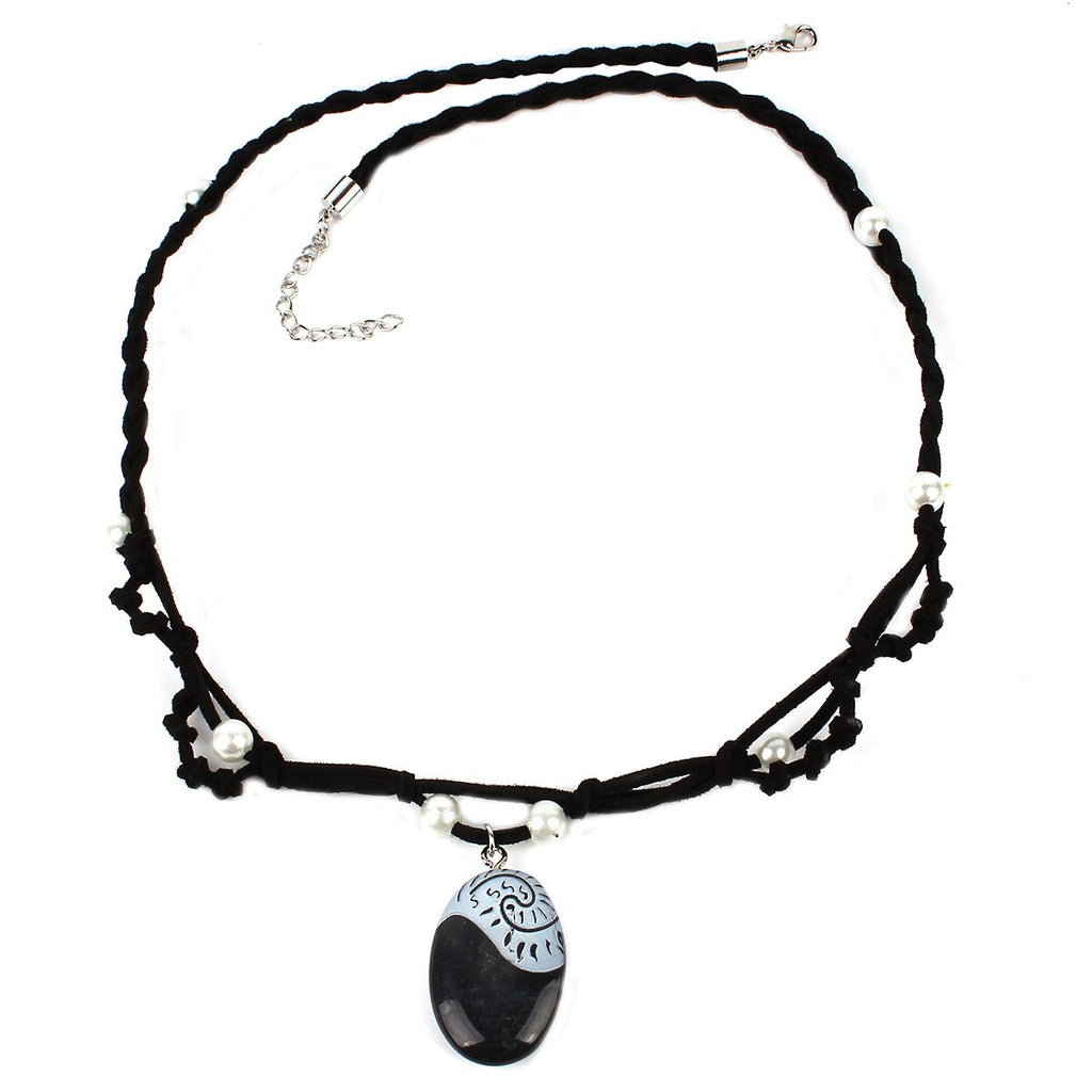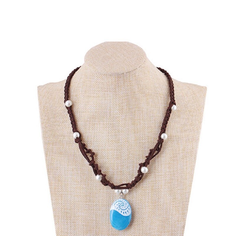 Made Knitting Leather Rope Chain Choker Necklaces Moana Ocean Romance Pearl Resin Heart Pendant Kolye Girls Jewelry