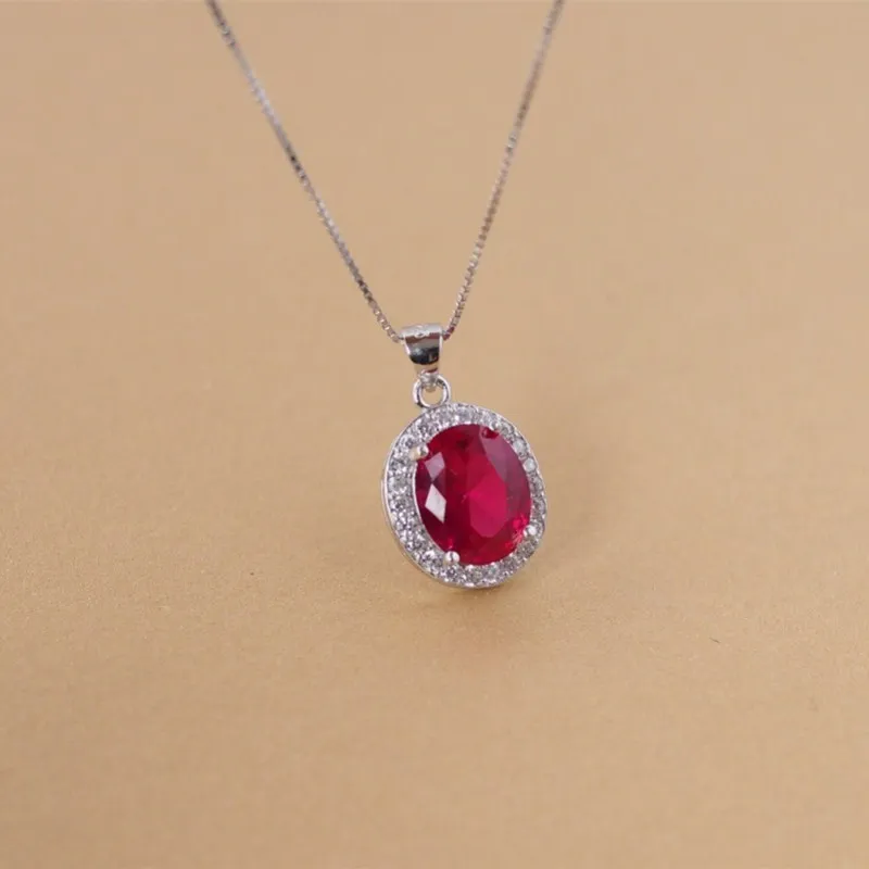 Magnificent Red Stone & Cubic Zircon Pendant Necklaces Fashion Accessory Party Best Gift For Women Ladies Bijouterie