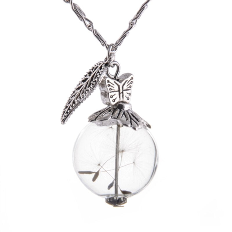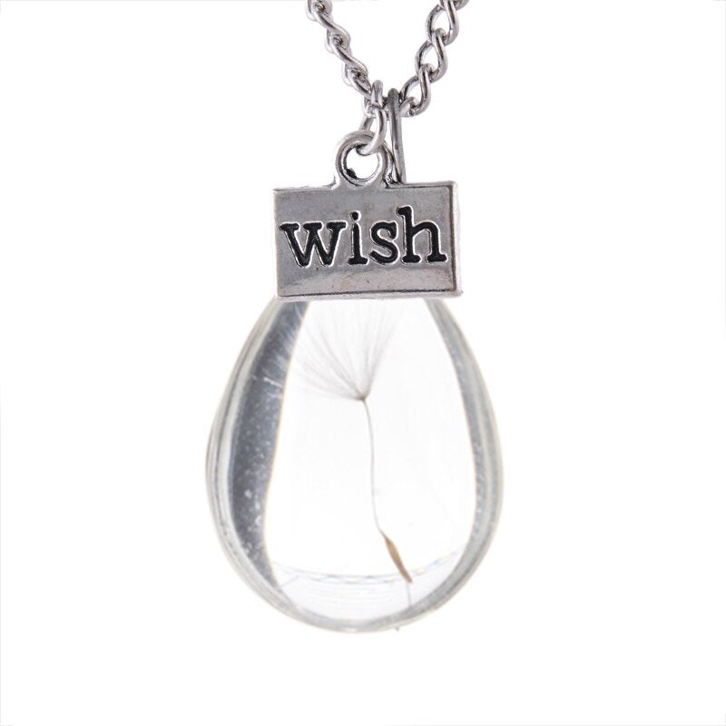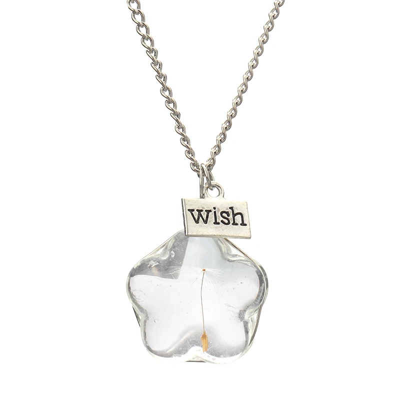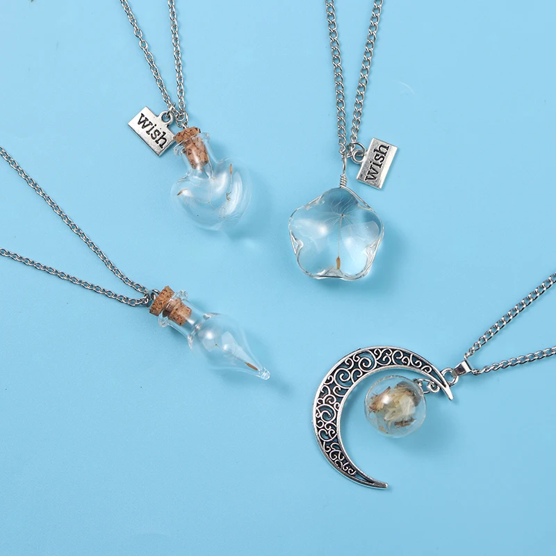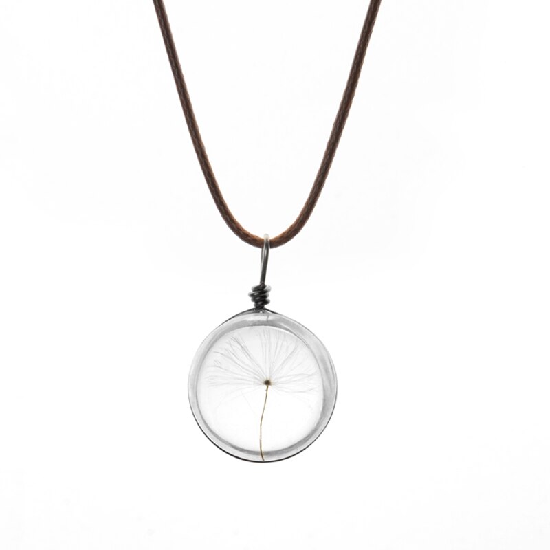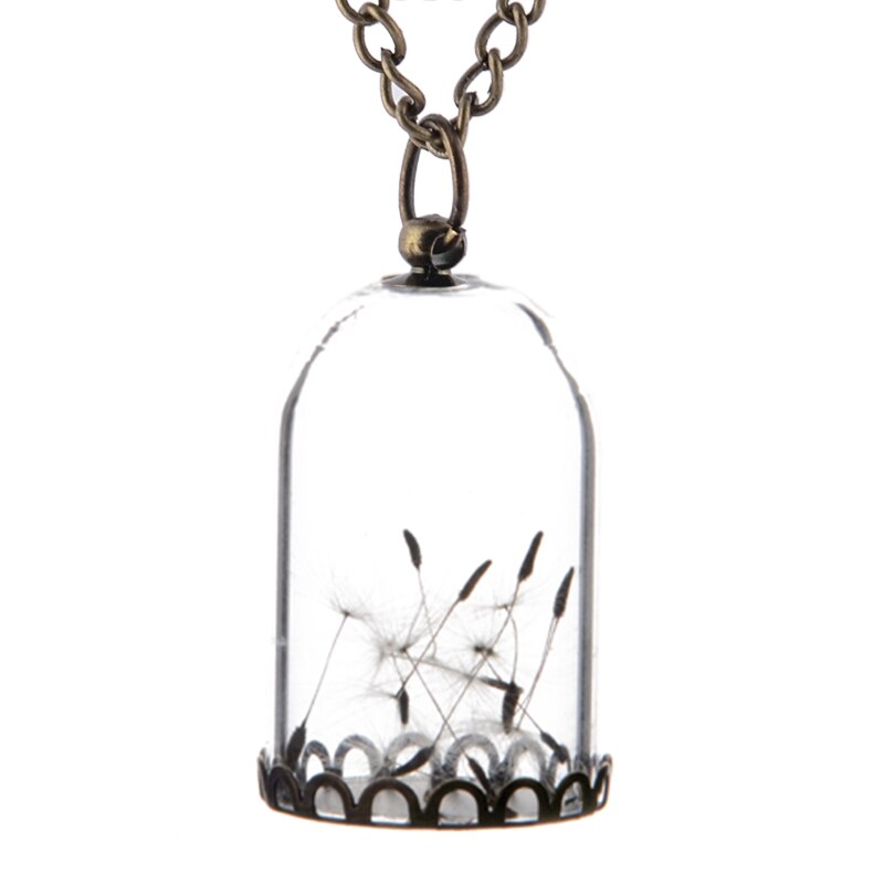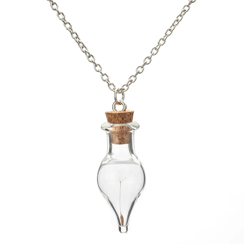 Make A Wish Transparent Glass Wishing Bottle Necklace Pendant For Women Bohemian Natural Dandelion Seed in Glass Chain