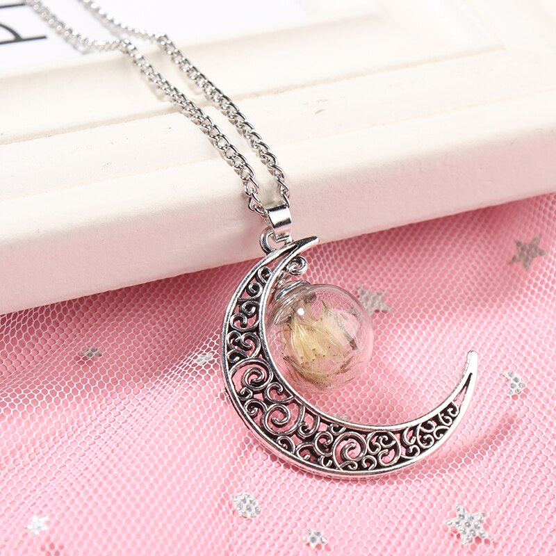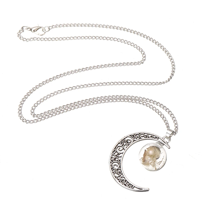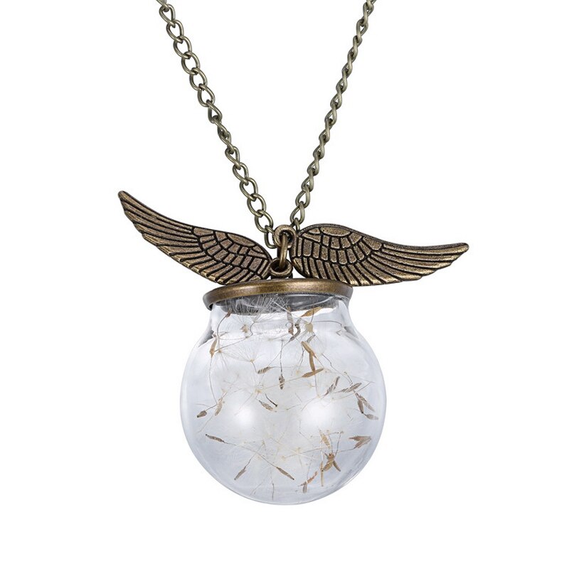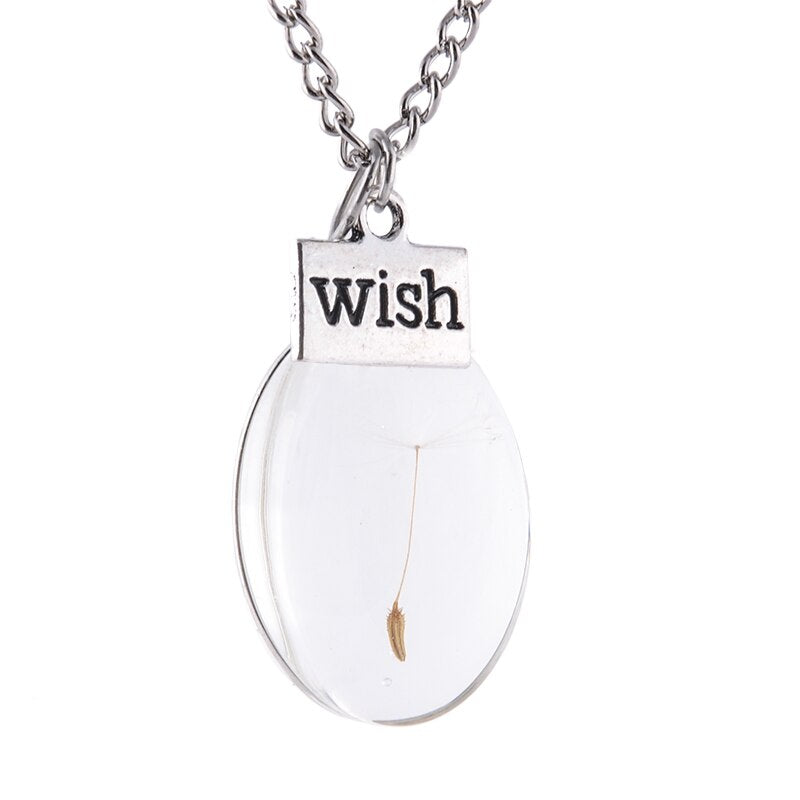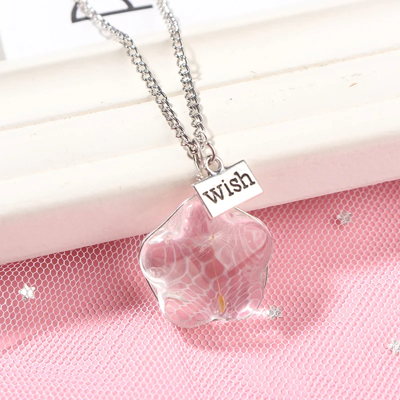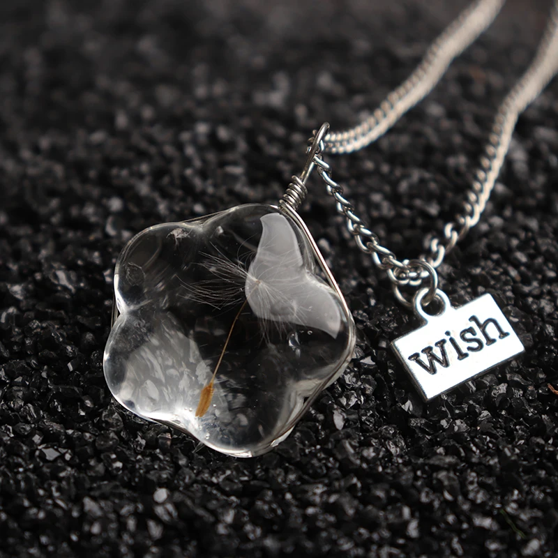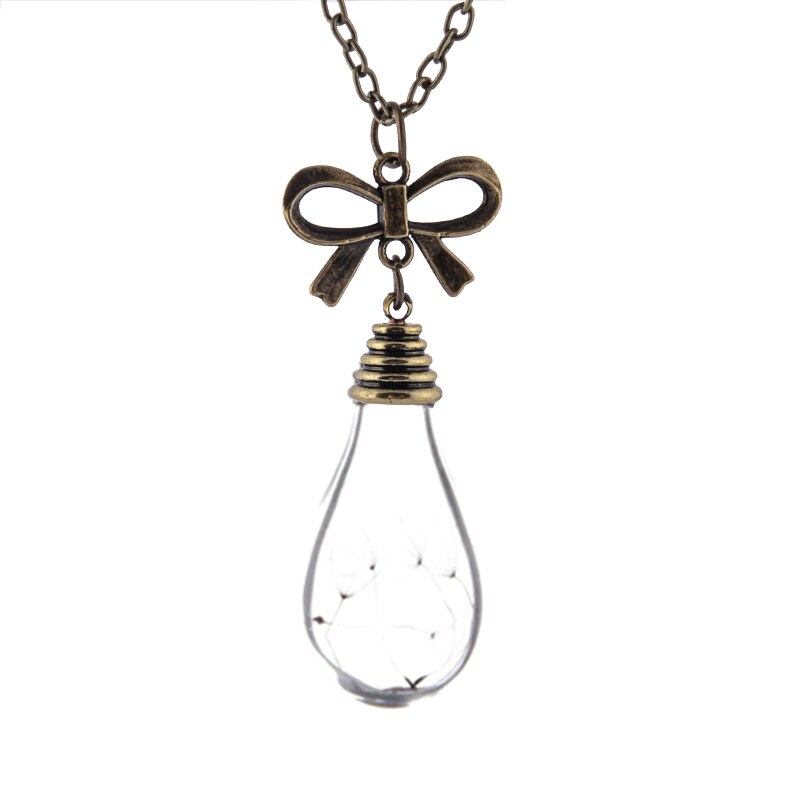 Make A Wish Transparent Glass Wishing Bottle Necklace Pendant For Women Bohemian Natural Dandelion Seed in Glass Chain