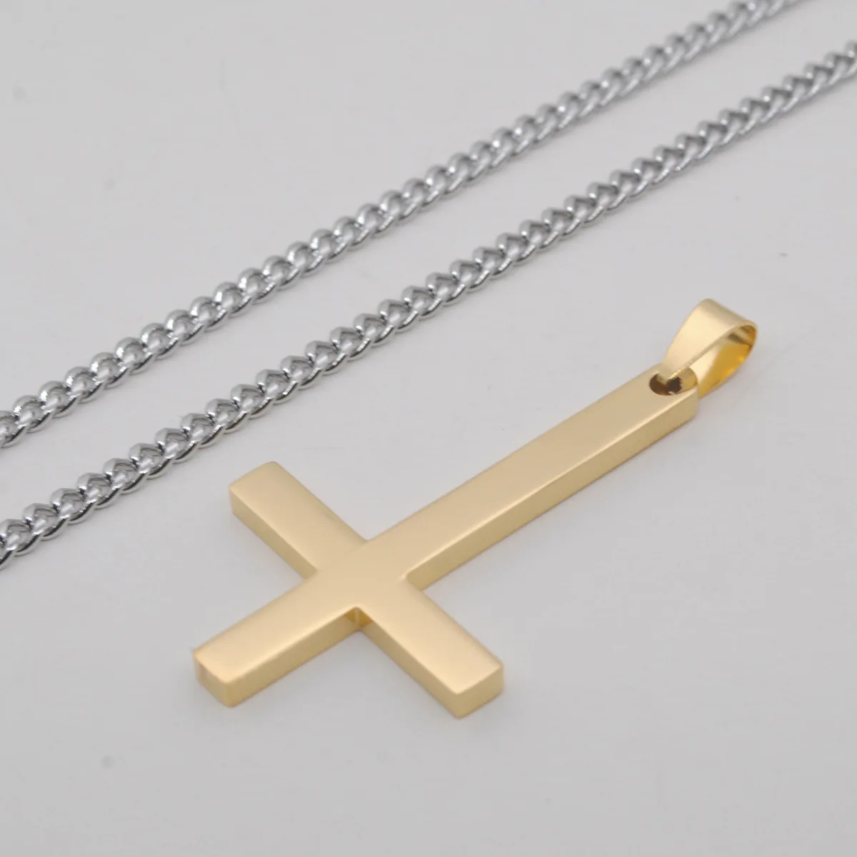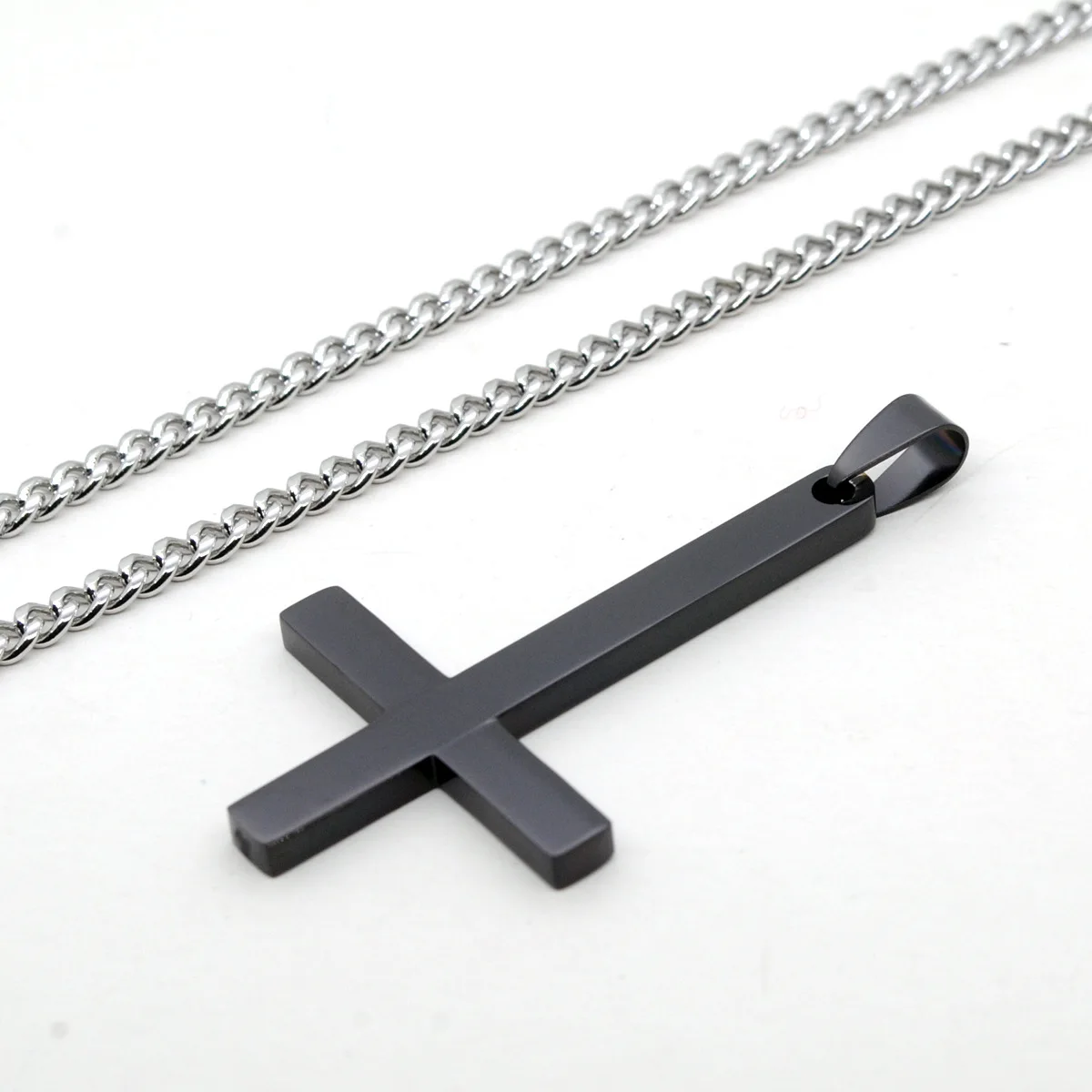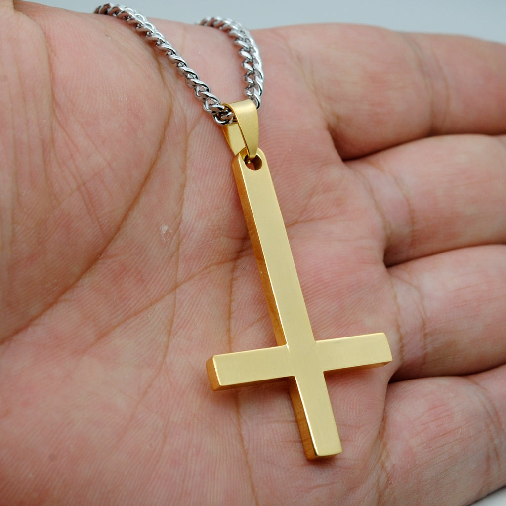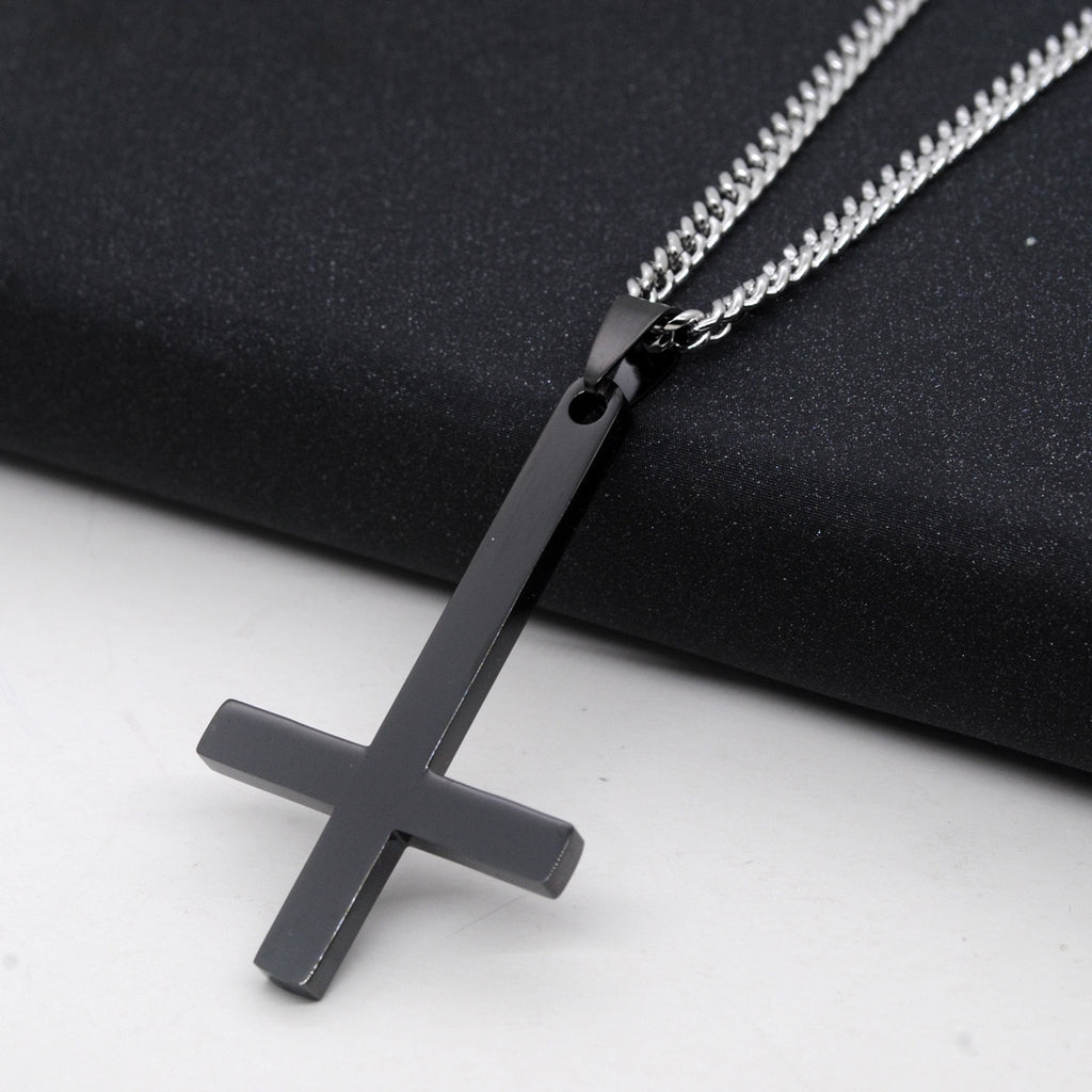 Male Black St Peter's Inverted Cross Pendant Necklace for Men Stainless Steel Choker Crux de Sanctus Petrus Jewelry