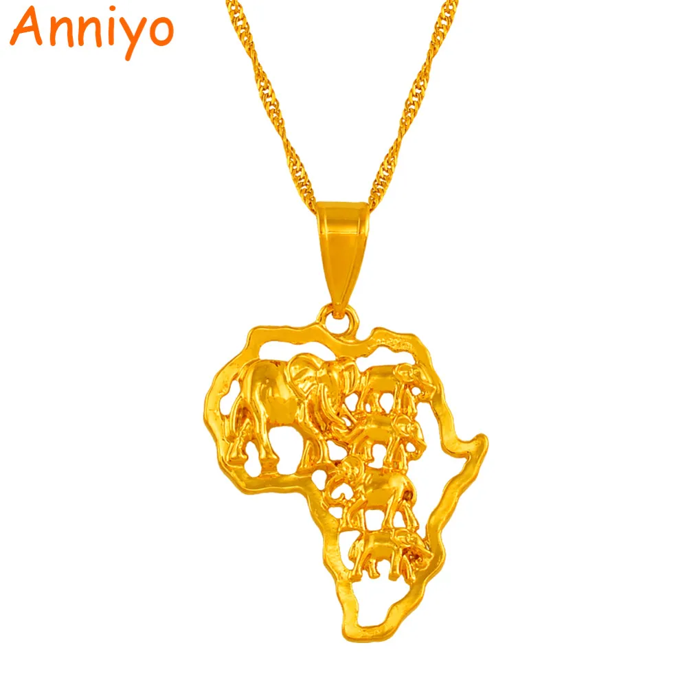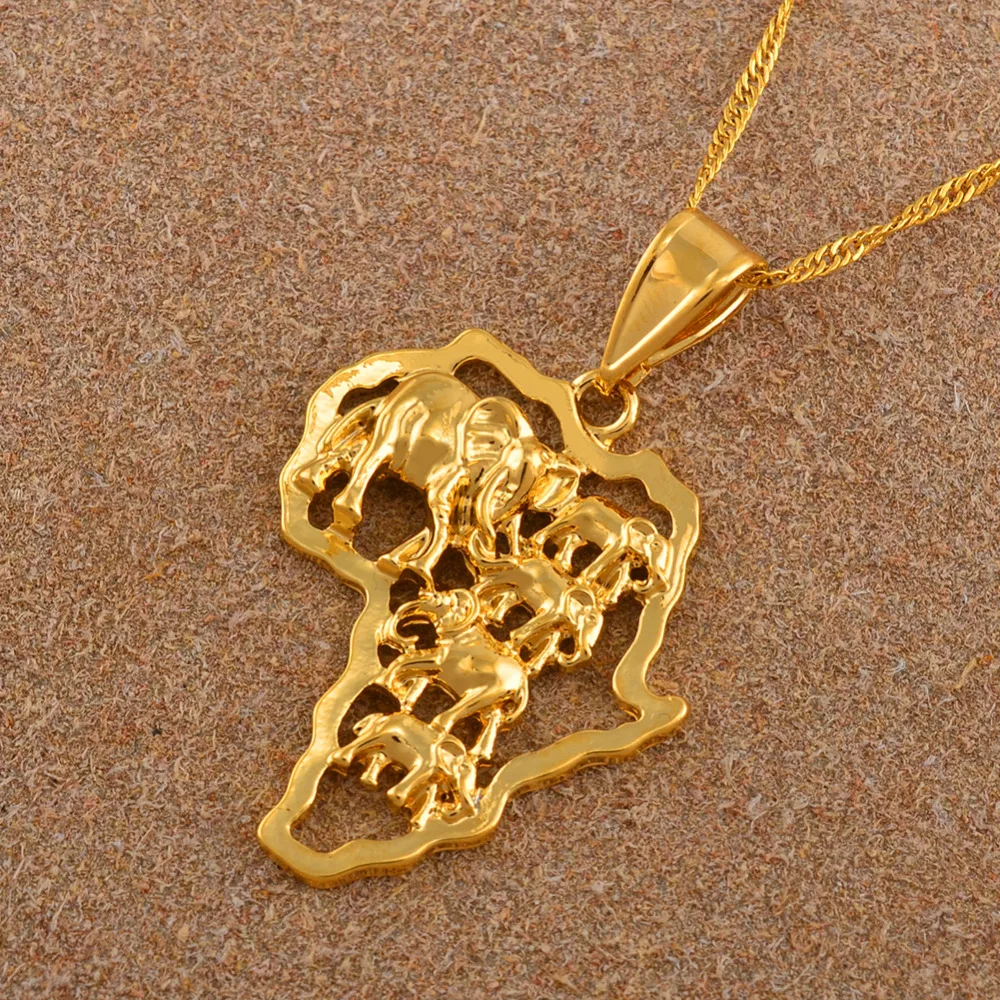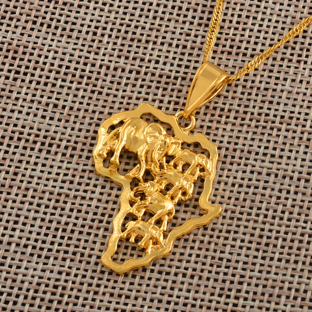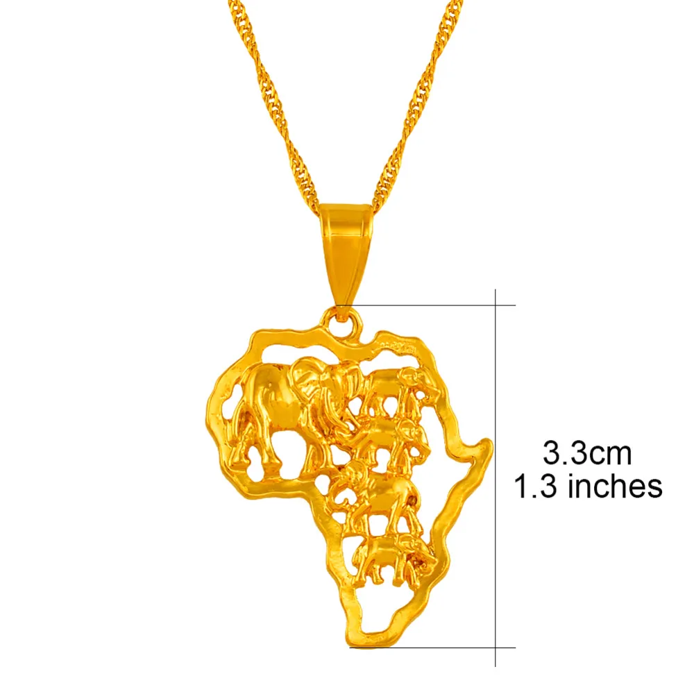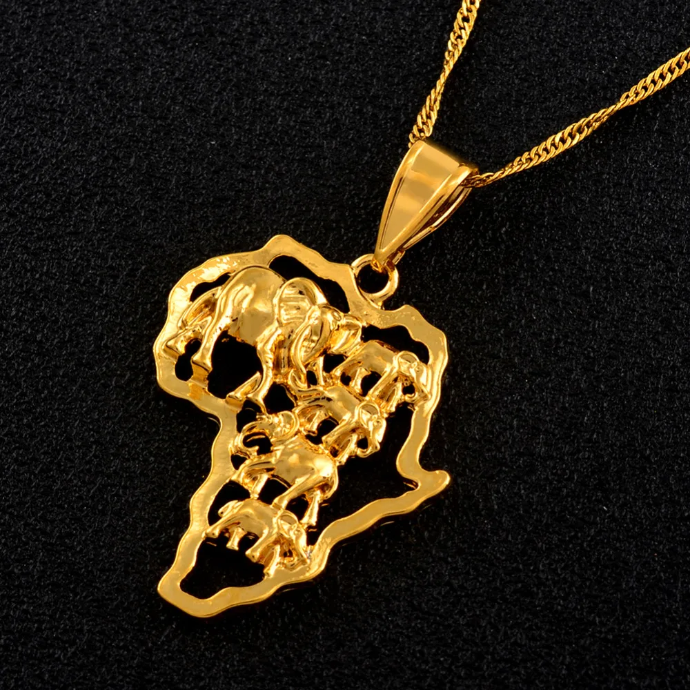 Map of Africa Necklace Gold Color Elephant African Map Pendant Chain Women/Men Ethiopian Jewelry Nigeria #132506