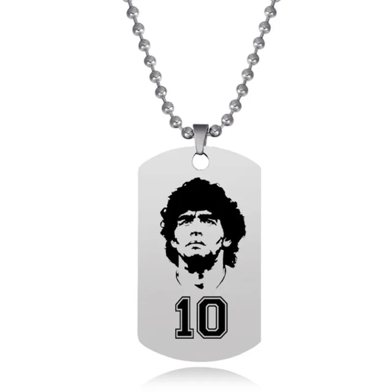 Maradona Pendant Necklace Football Super Star Beaded Stainless Steel Tag Collection Jewelry 5x2.8cm