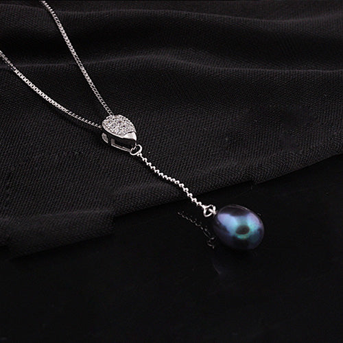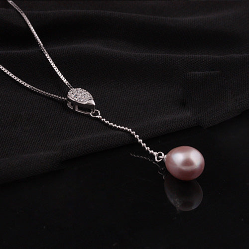 [MeiBaPJ]9-10mm big size pearl necklace Elegant 925 sterling silver water drop pendant necklace for women 4 colors with gift box