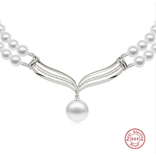 [MeiBaPJ] Luxury fashion wedding bride necklace jewelry 8-9mm big natural pearl Pendant Necklace 925 Silver jewelry