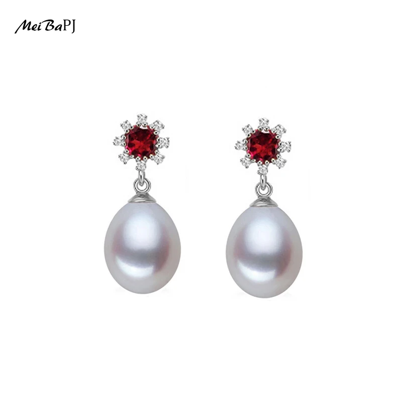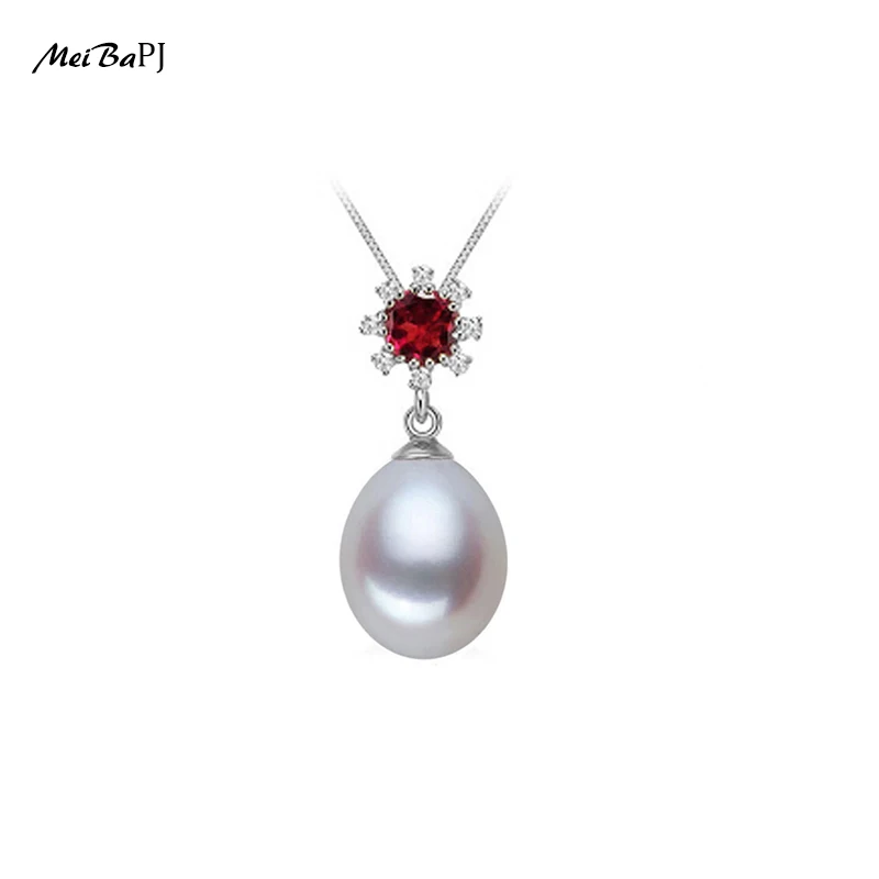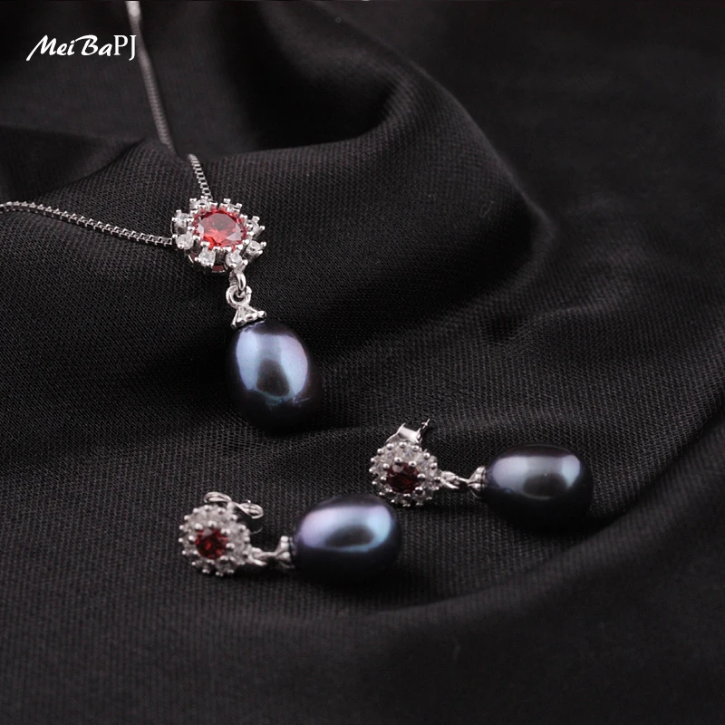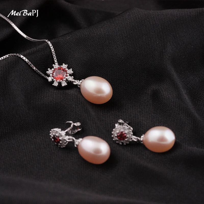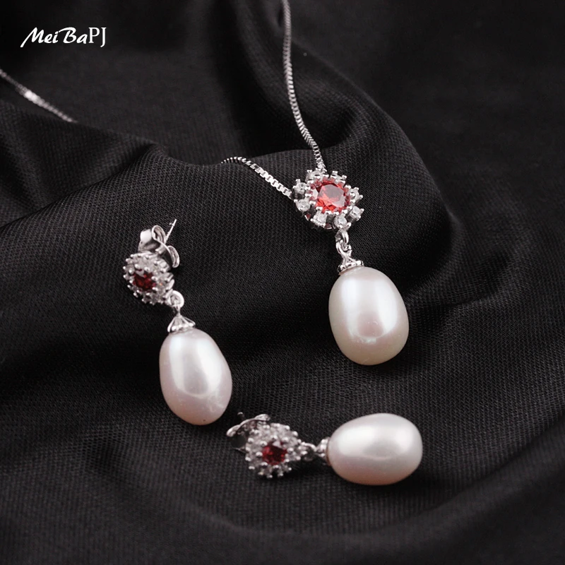 New Specials Real Pearl Jewelry Sets Real 925 Solid Silver Red Stone Pendant & Earrings Charm Jewelry Set Gift Box