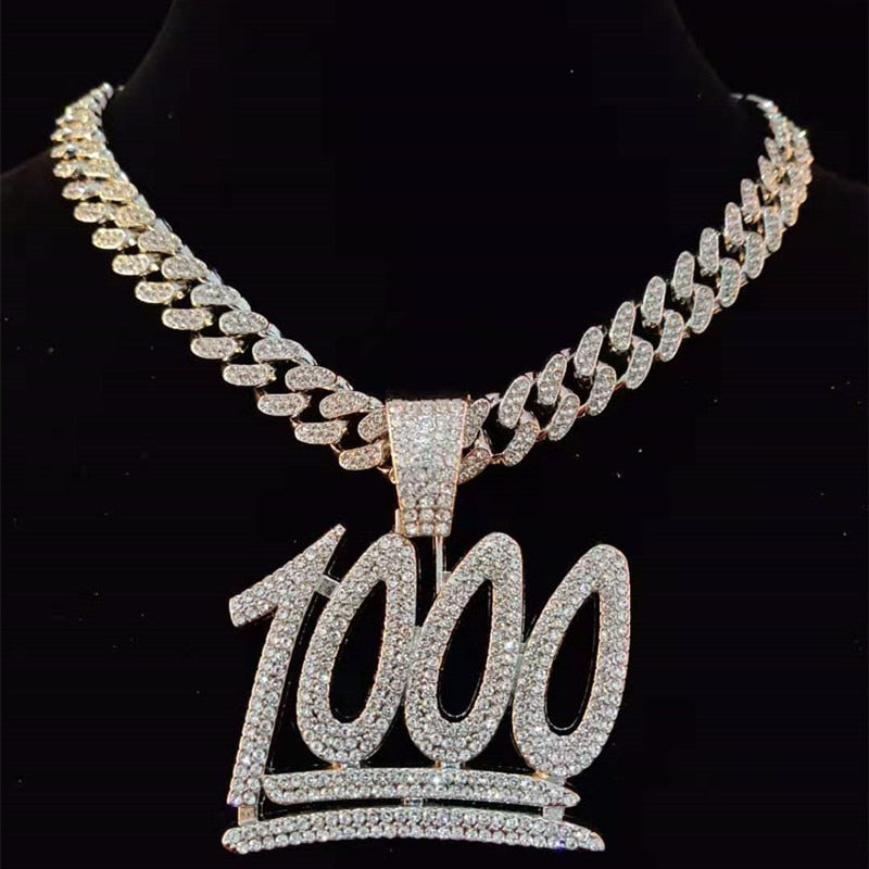 Men Hip Hop 1000 Number Pendant Necklace with 13mm Miami Cuban Chain Iced Out Bling HipHop Necklaces Male Jewelry