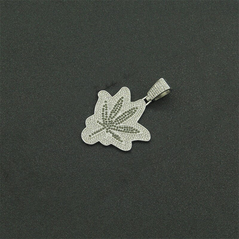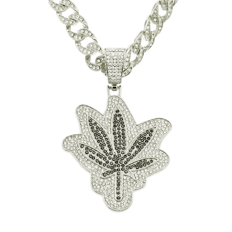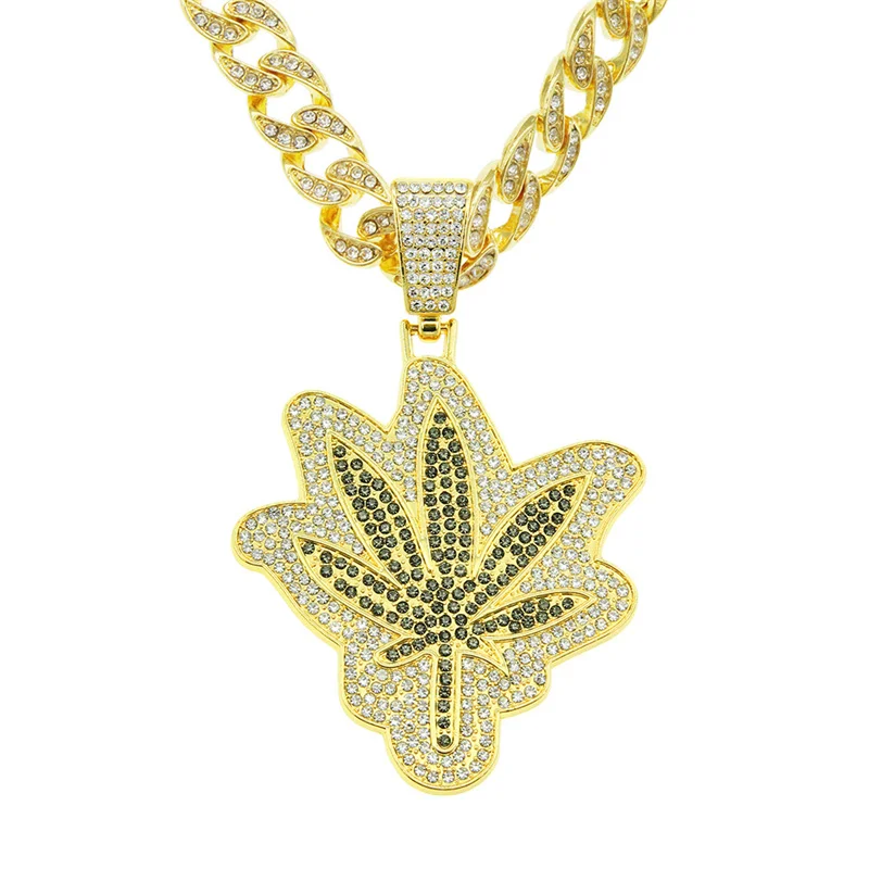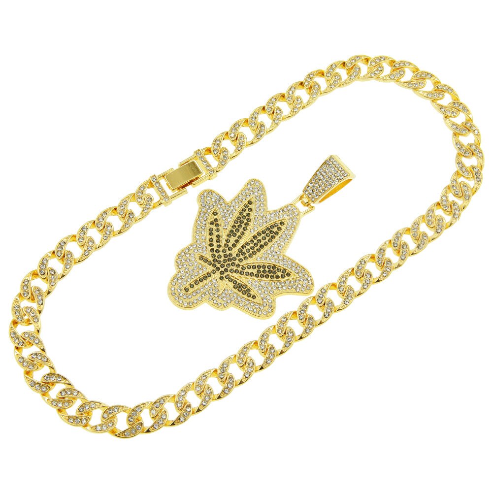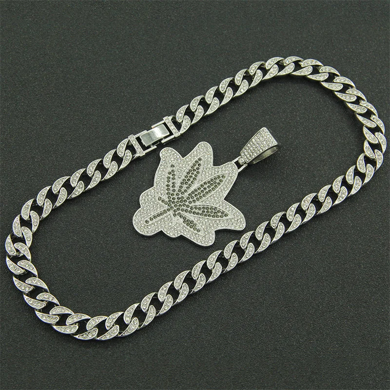 Men Hip Hop Iced Out Bling Maple Leaf Pendant Necklace 13mm Crystal Cuban Chain Hiphop Necklaces Charm Jewelry
