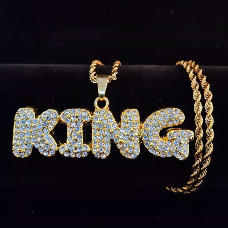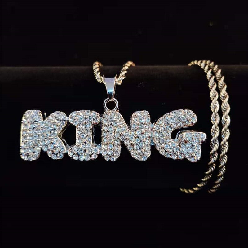 Men Hip Hop KING Letters Pendant Necklace with 13mm Miami Cuban Chain Iced Out Bling HipHop Necklaces Male Charm Jewelry