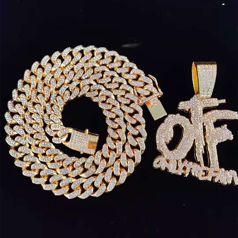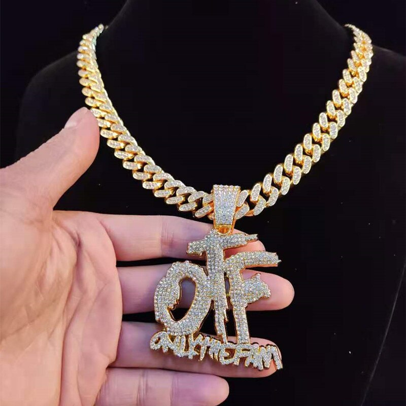 Men Hip Hop ONLY THE FAM Letters Pendant Necklace with 13mm Miami Cuban Chain Iced Out Bling HipHop Necklaces Male Jewelry