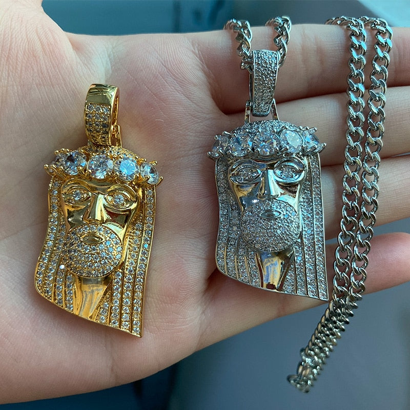 Men Hip Hop Rapper Popular Jewelry Necklace Cleopatra Religious Jesus Portrait Pendant Necklace For Women Stainless Steel Chain
