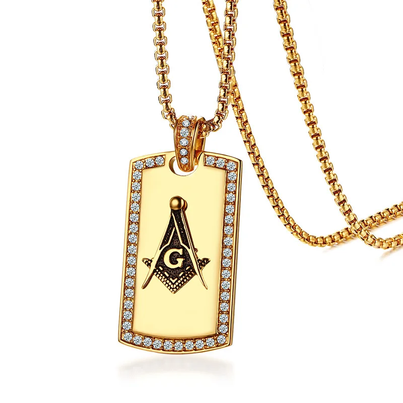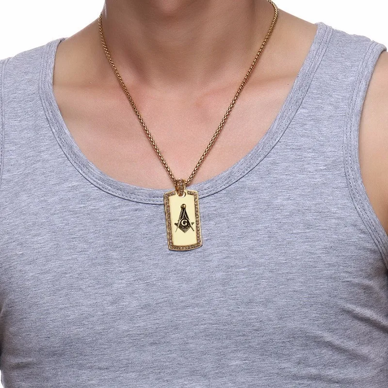 Men's Masonic Dog Tag Pendant Necklace with C Men Jewelry Stainless Steel Freemason Gold Tone Hop Accessories 24 inch