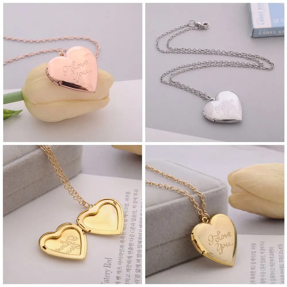 Men Women Friend Jewelry Chain Heart Shaped Necklace Photo Picture Locket Pendant