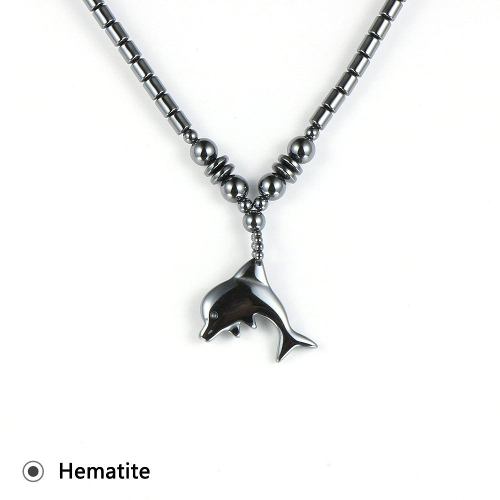Men Women Hematite Geometric Multi-layer Round Heart Dolphin Pendant Necklace Clavicle Chain Natural Stone Choker Party Jewelry