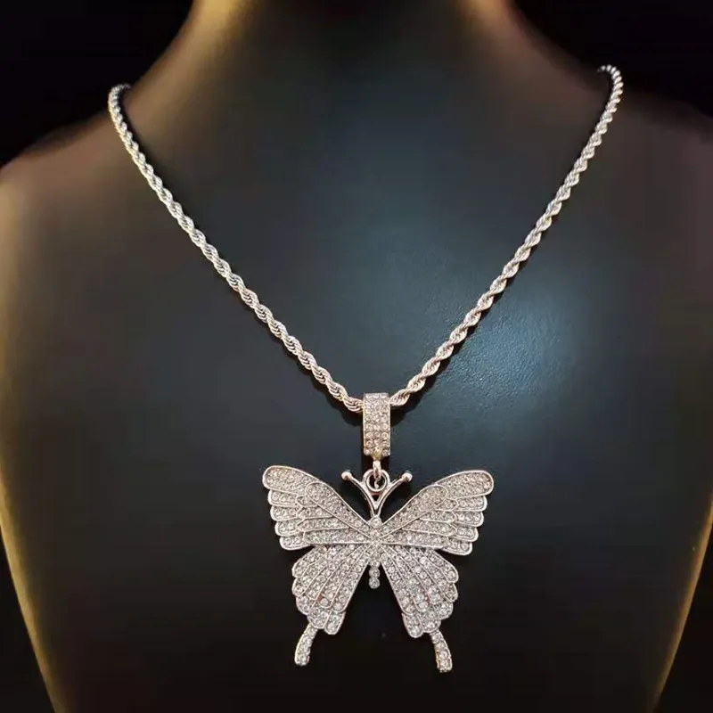 Men Women Hip Hop Iced Out Bling butterfly Pendant Necklace with 13mm Miami Cuban Chain HipHop Necklaces Charm Jewelry