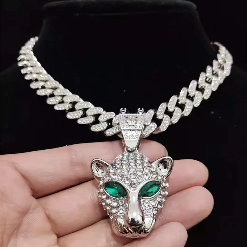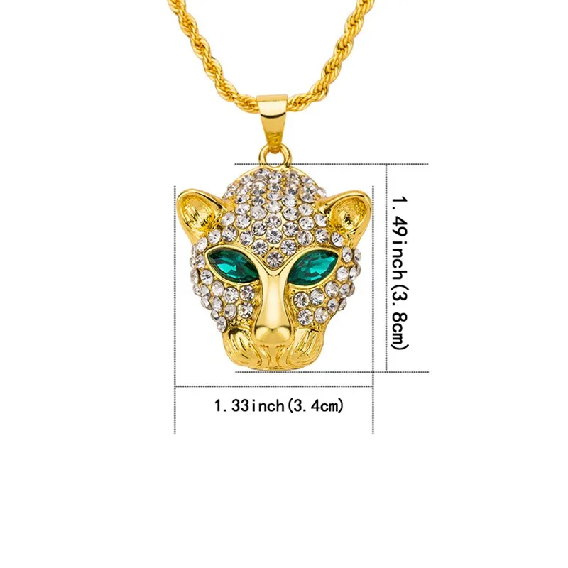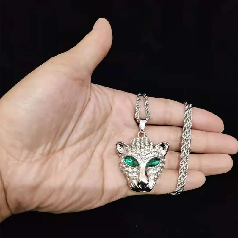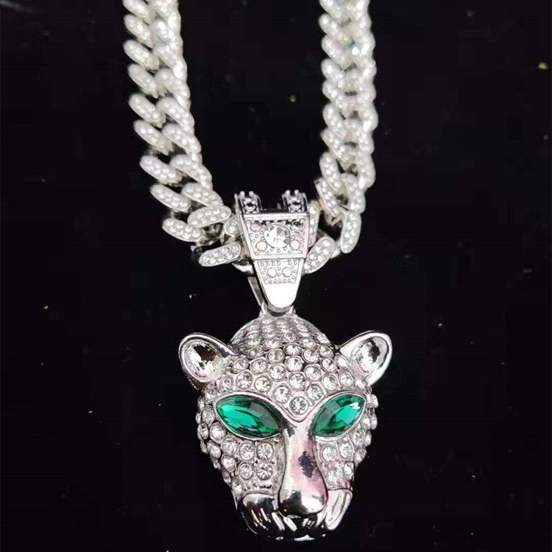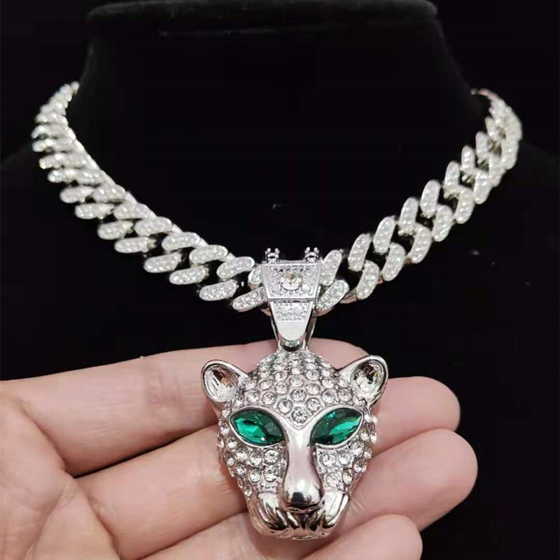 Men Women Hip Hop Leopard Pendant Necklace Miami Cuban Chain Iced Out Bling HipHop animal Necklaces Charm Jewelry